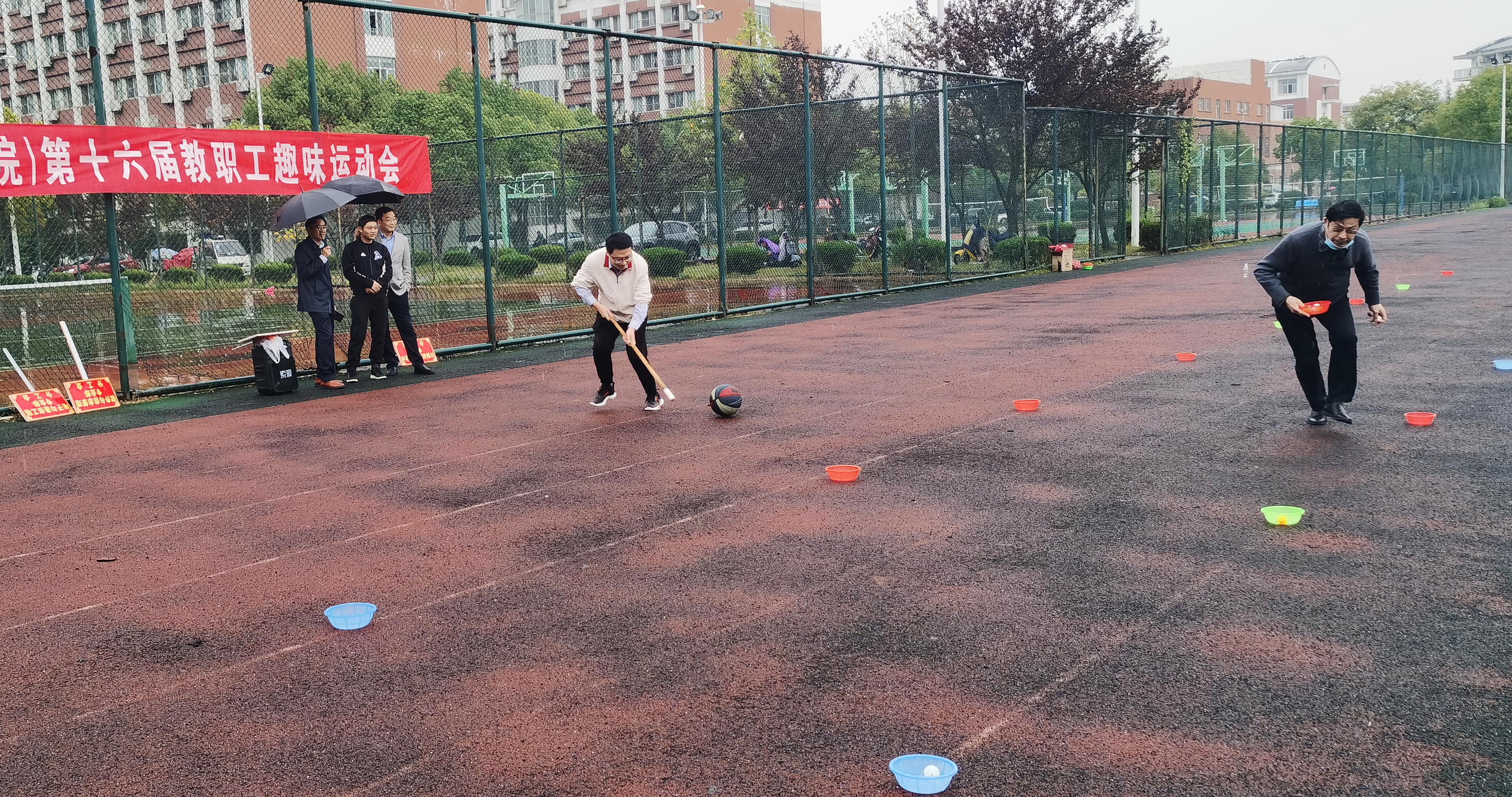 本次趣味运动会设置了抢收抢种、赶篮球跑接力、打保龄球等比赛项目。比赛过程中下起了小雨,老师们热情不减,个个全力投入,互相鼓励、互相帮助,发扬了团结协作的精神风貌。比赛结束后,学院领导为获得各比赛项目一等奖、二等奖、三等奖的老师颁发了奖品。