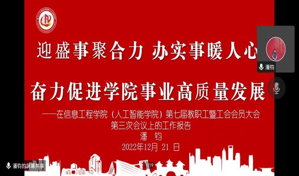 潘钧从“围绕学院工作中心,积极配合院党政加强教职工思想建设”“努力为教职工办实事、做好事、解难事,提高学院凝聚力”“认真开展好文体活动,丰富广大教职工的业余文化生活”“加强工会自身建设,积极推进建家工作”等四个方面全面总结了2022年度工会工作。