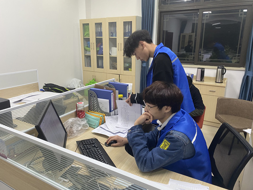 11月21日上午9时,本科生第一党支部党员在支部书记张海兵老师的带领下,在顺达社区党群服务中心集中,经社区工作人员王书记指导和培训后,大家基本掌握人口普查工作要领。所有工作任务分解后,由4名党员一组分工协作,先后来到淮左郡庄园、名兴花园,进行上门核查,主要包括职业、婚姻状况等信息采集登记。对家中无人的住户,党员志愿者们又回到社区获取住户的联系方式,进行电话问访。