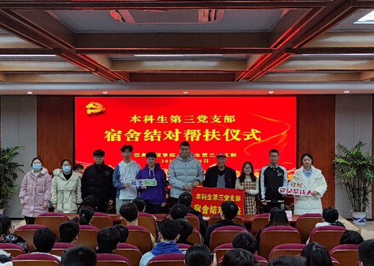 “真情帮扶润物无声,凝心聚力共同进步”,党员们与新生结对班级代表举行宿舍结对帮扶仪式,刘方云爷爷授予新生班级结对帮扶手持牌,帮助新老生认识沟通,并进行合照。之后,党员与所有新生宿舍舍长进行交流合照。