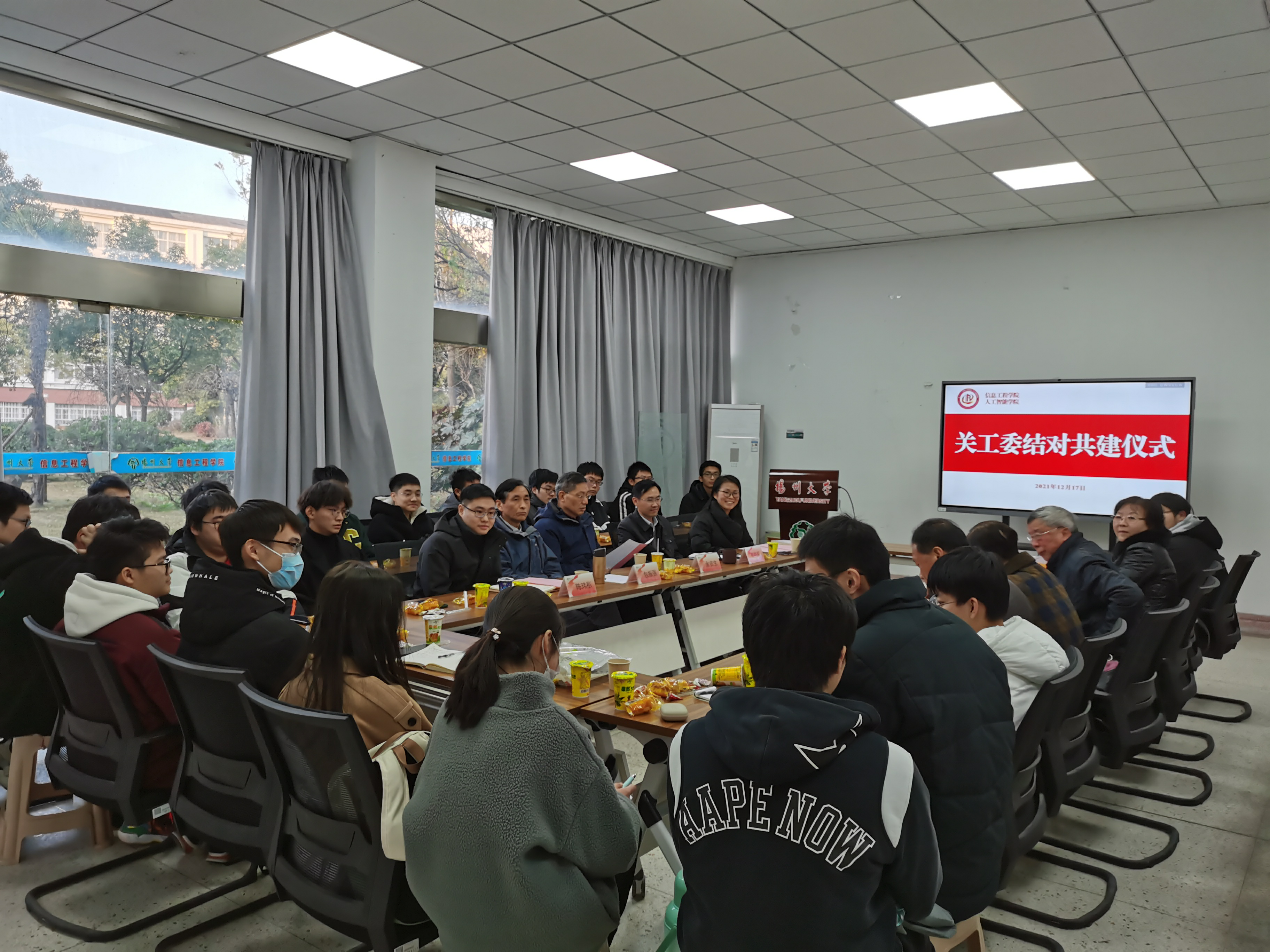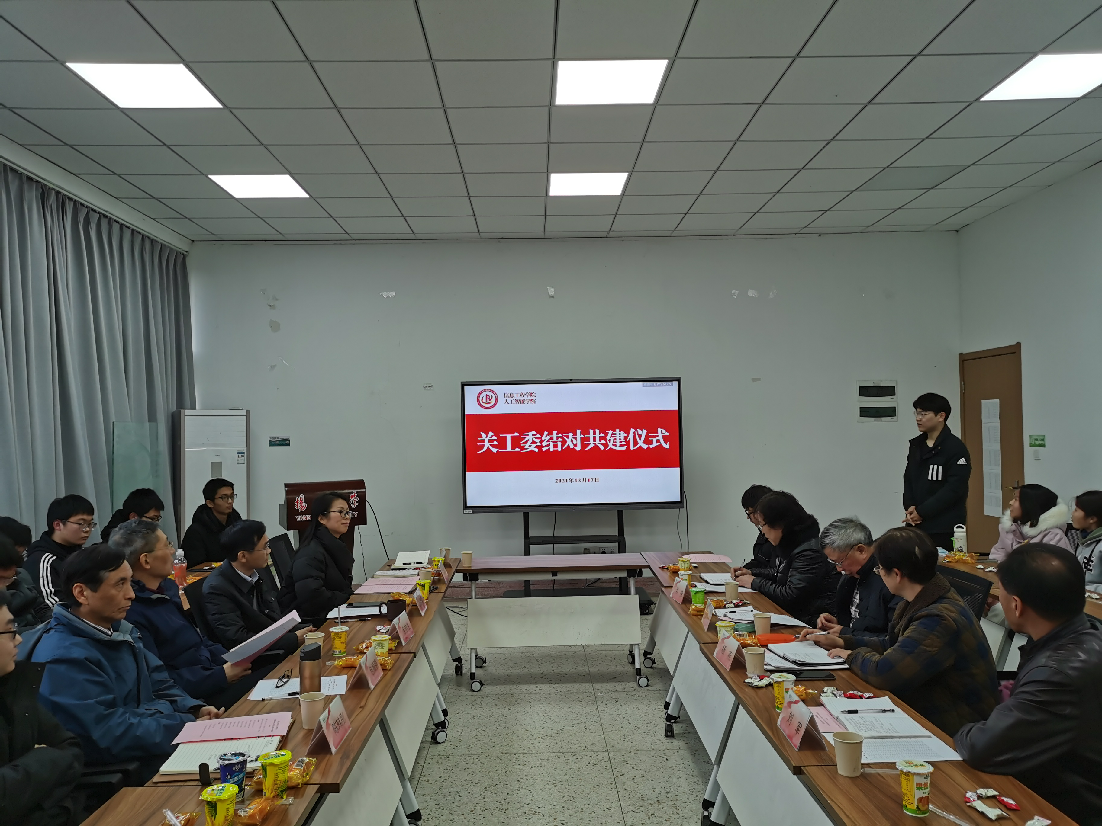 12月17日下午,学院开展关工委与2021级新生班级结对共建仪式。校关工委办公室主任刘方云,离退休第二党支部洪拂、杨燕,扬子津工作站刘军,院关工委余吉生、包振强,院党委副书记崔益军,2021级辅导员孙念心,软件2101班主任陈玮彤出席活动。院团委副书记、关工委执行秘书方晓敏主持会议。