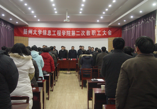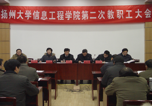1月6日,信息工程学院隆重召开第二次教职工大会。大会认真听取和审议了院长陈崚所作的2009年工作报告,对2010年的主要工作进行部署,通过了《信息工程学院第二次教职工大会决议》。