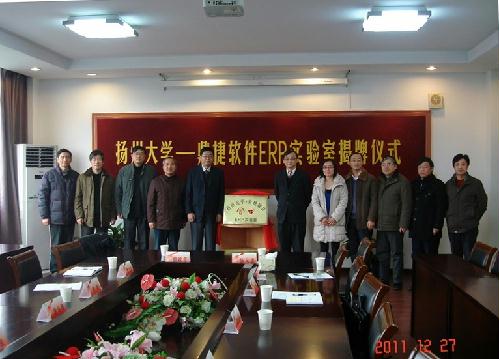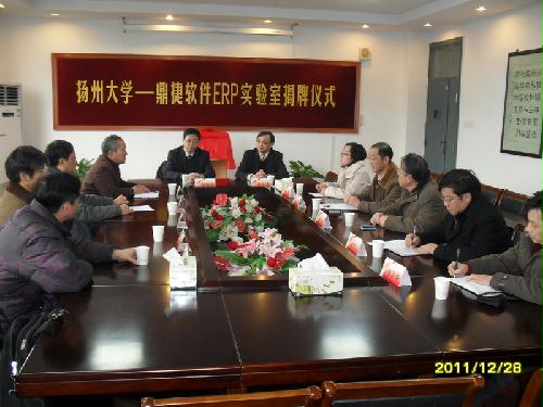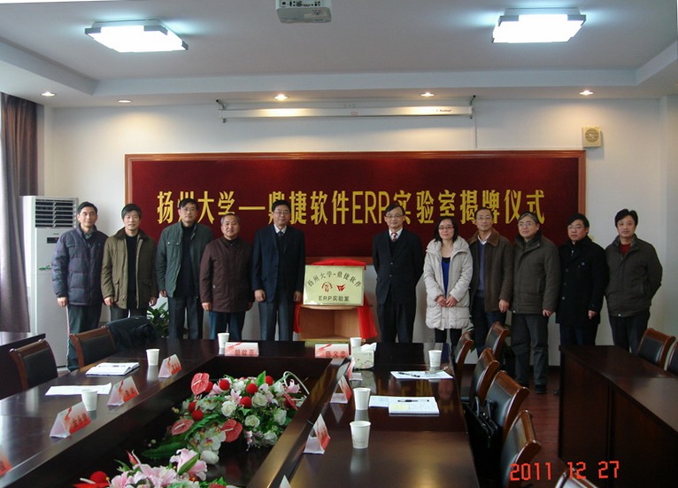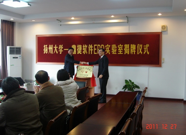 12月28日,扬州大学—鼎捷软件ERP实验室揭牌仪式在我院举行。副校长胡效亚教授、鼎捷软件股份有限公司副总裁陈义忠先生、鼎捷软件知识学院教育推广主管孙燕女士出席揭牌仪式,校设备处李宜祥处长、教务处张清副处长以及信息学院的领导、专业部、实验中心负责同志参加揭牌仪式。揭牌仪式由院长李斌主持。