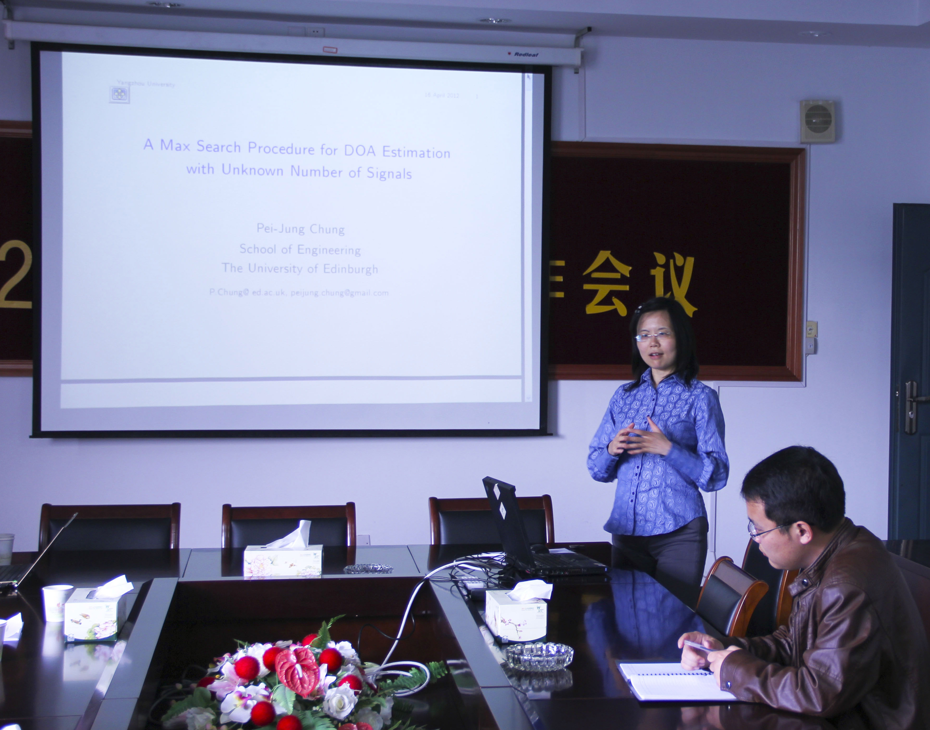4月16日,作为校庆系列报告会之一,我院邀请东南大学移动通信国家重点实验室陈明教授、博士生导师和英国爱丁堡大学工程学院Pei-Jung Chung博士作了电子与通信工程新技术的专题报告。陈教授和Chung博士报告的题目分别是“移动通信系统覆盖能力提升技术”、“A Max Search Procedure for DOA Estimation with Unknown Number of Signals”。