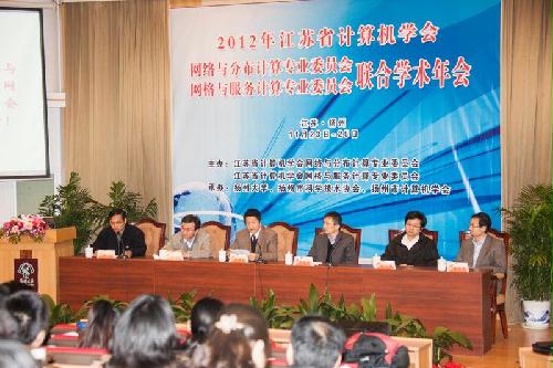11月23至25日,2012年江苏省计算机学会网络与分布计算专委会和网格与服务计算专委会联合学术年会在扬州大学召开。本次年会由我院承办。扬州大学副校长陈国宏教授、省计算机学会副理事长、网格与服务计算专业委员会主任、东南大学计算机科学与工程学院院长罗军舟教授、网络与分布计算专业委员会主任、南京航空航天大学计算机学院副院长王箭教授以及来自省内外高校和企业界的110多位代表出席24日在扬州大学逸夫图书馆报告厅举行的大会开幕式。大会开幕式由李斌院长主持。