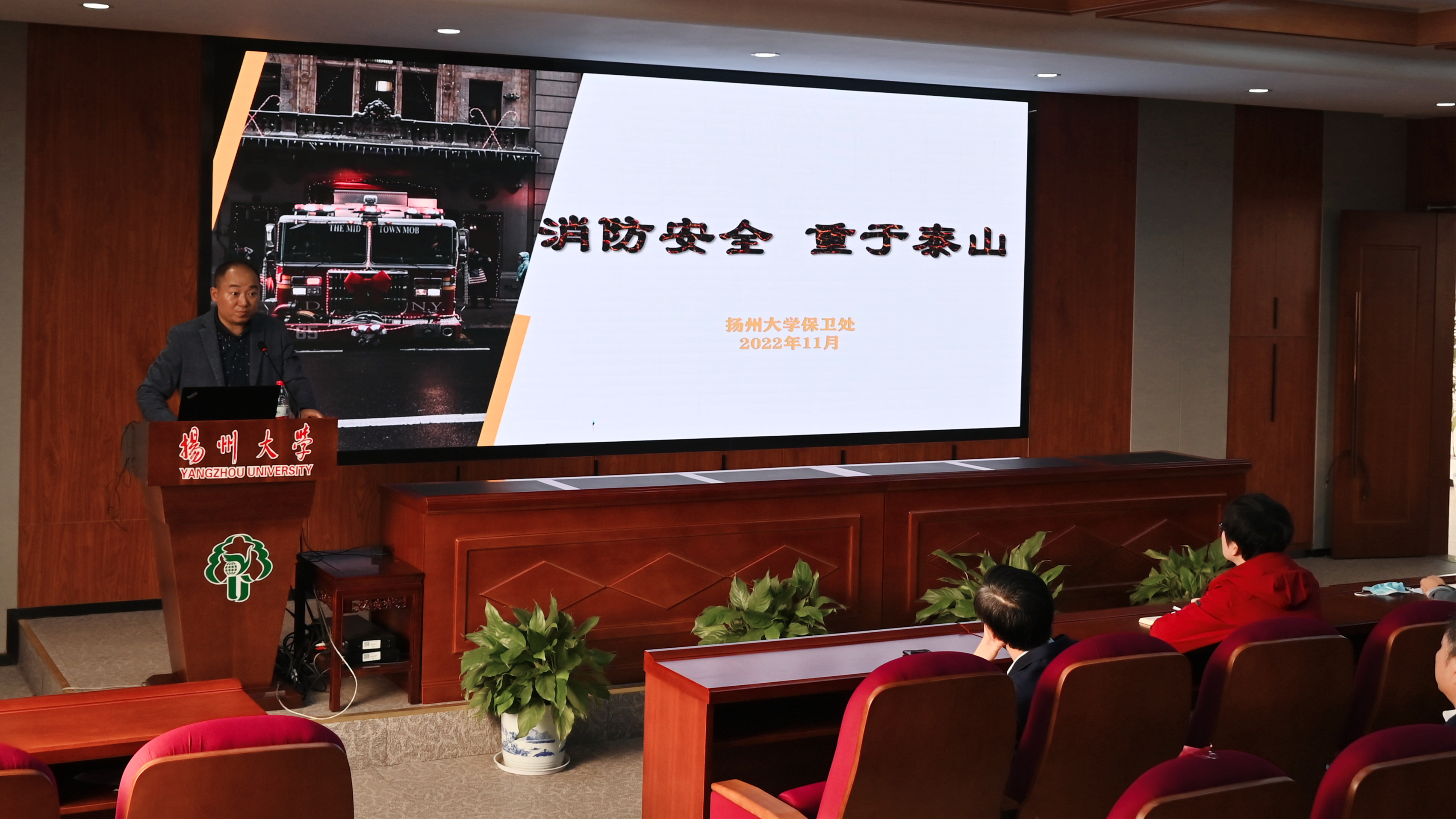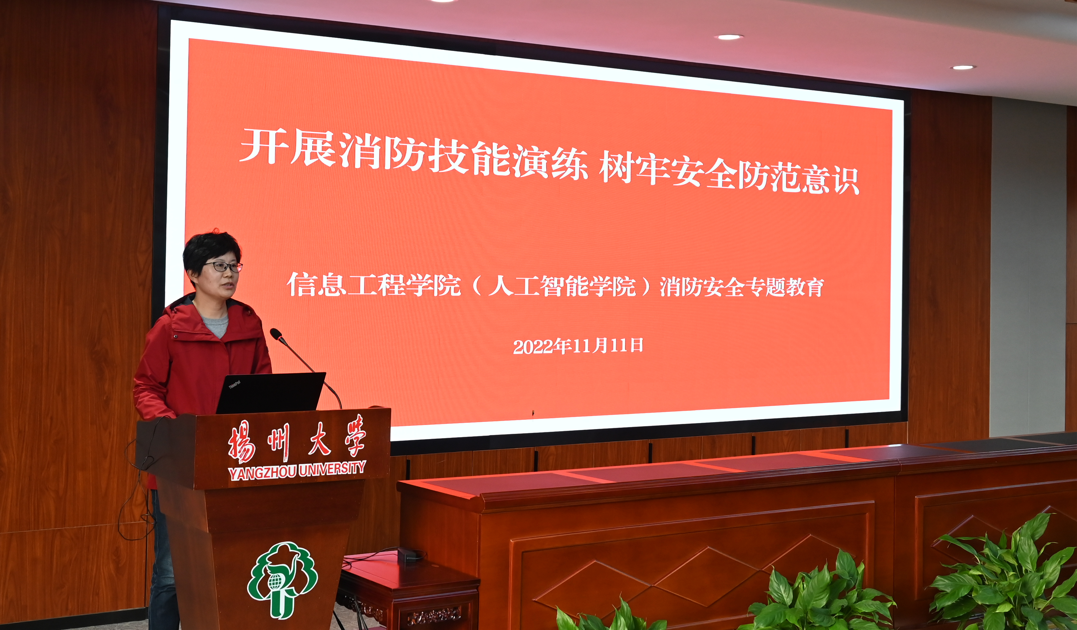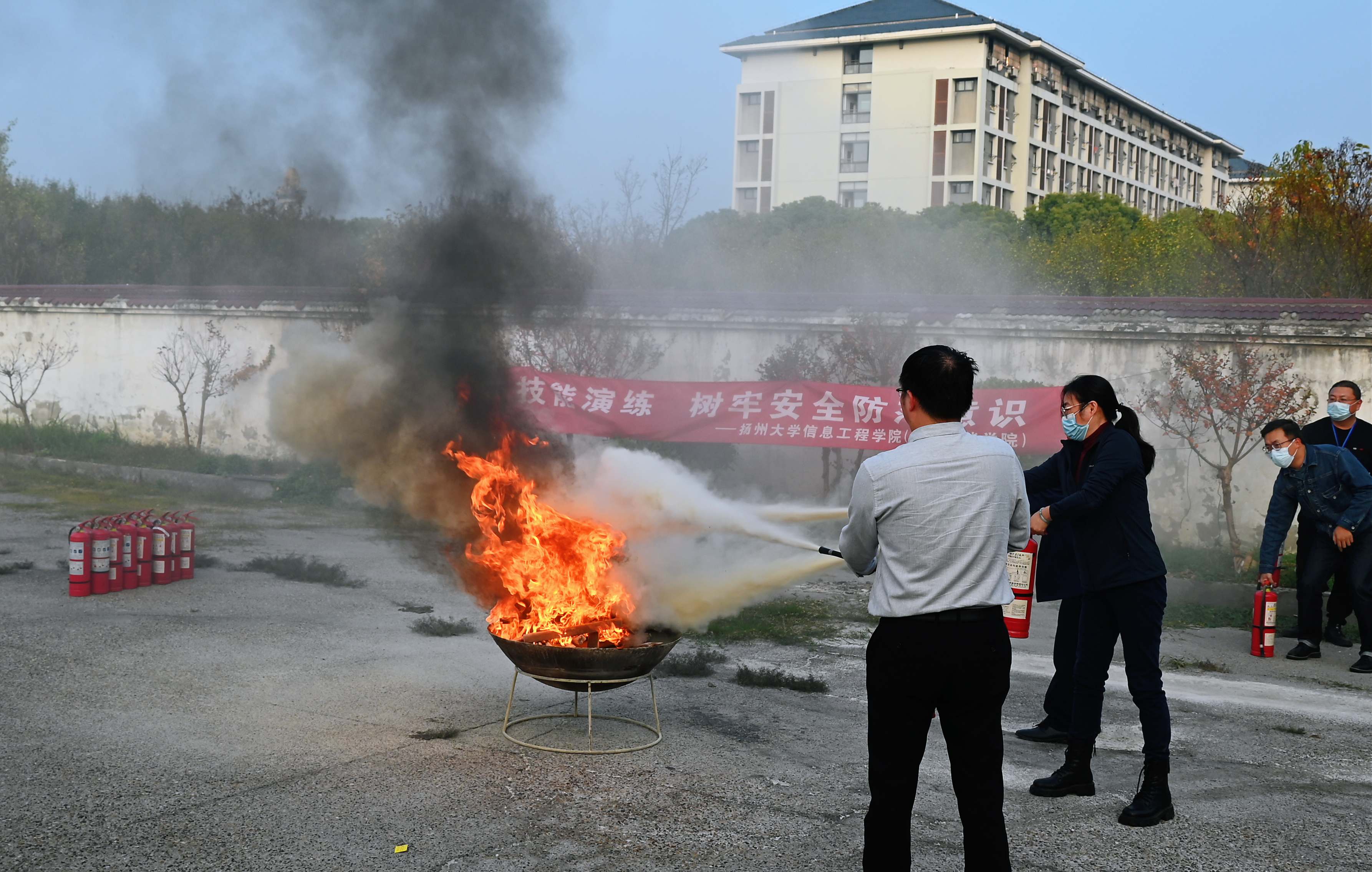 讲座结束后,师生员工代表前往扬子津东区进行消防安全演练。