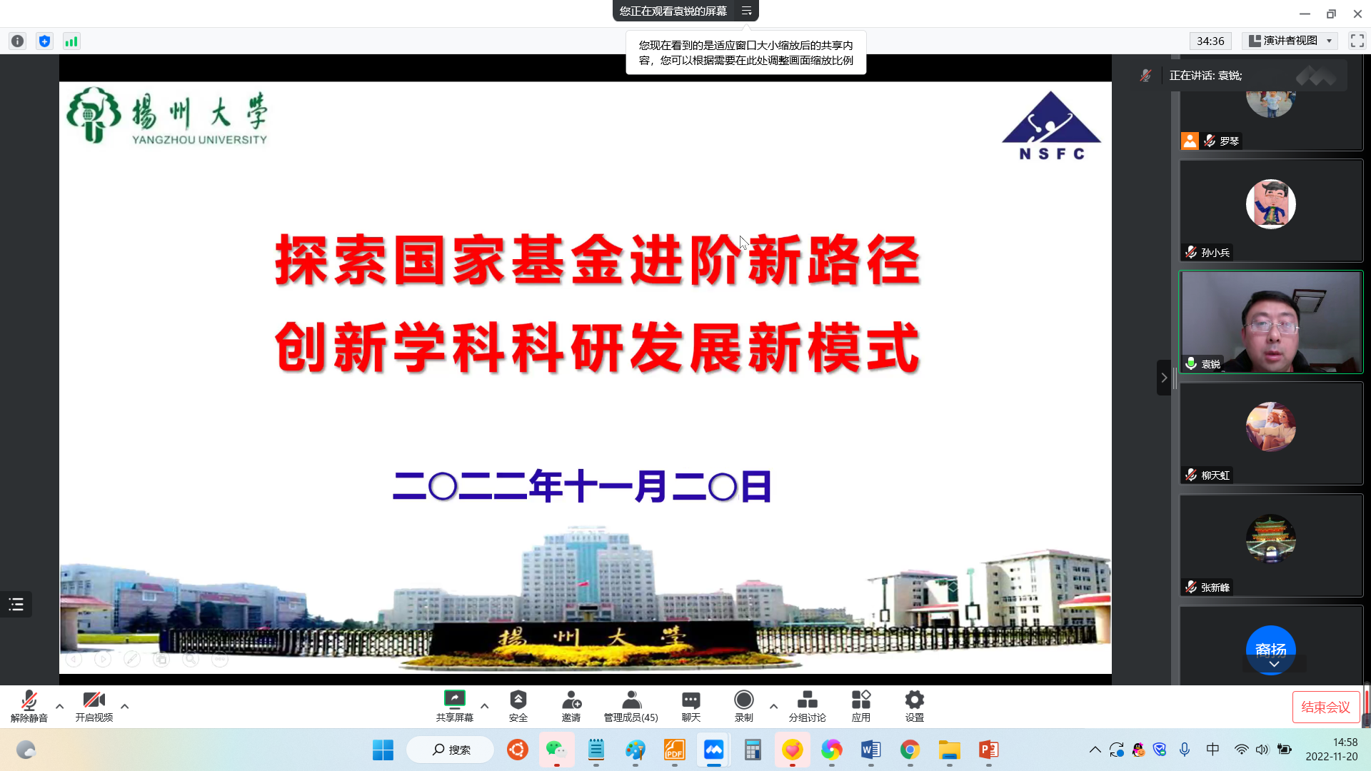 裔扬强调,今年省基金申报时间提前,希望大家关注基金申报时间截点,尽早着手准备,多轮打磨;结合两位老师分享的申报经验,要多加强对外学术交流,把握学科前沿,提高申请书质量。