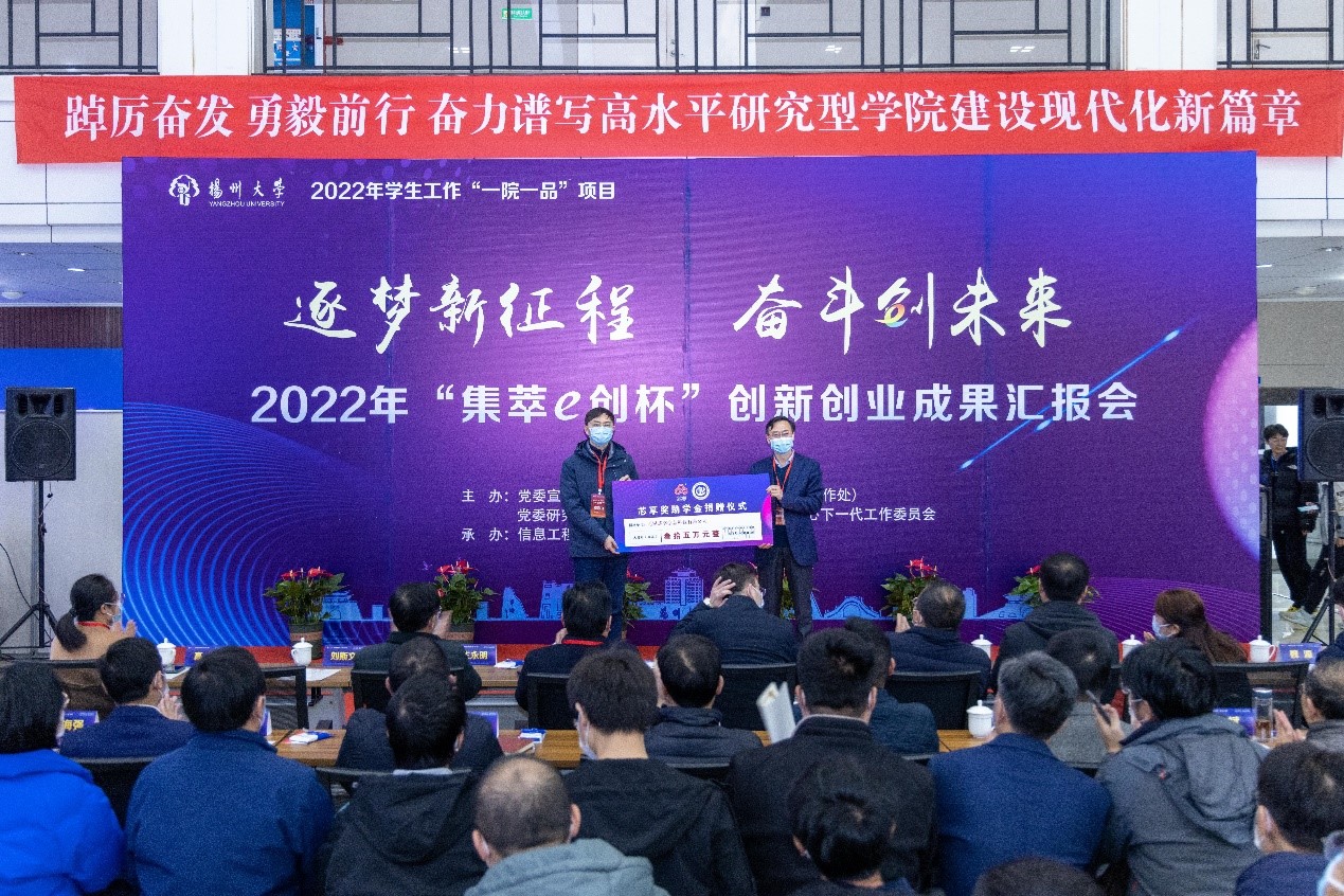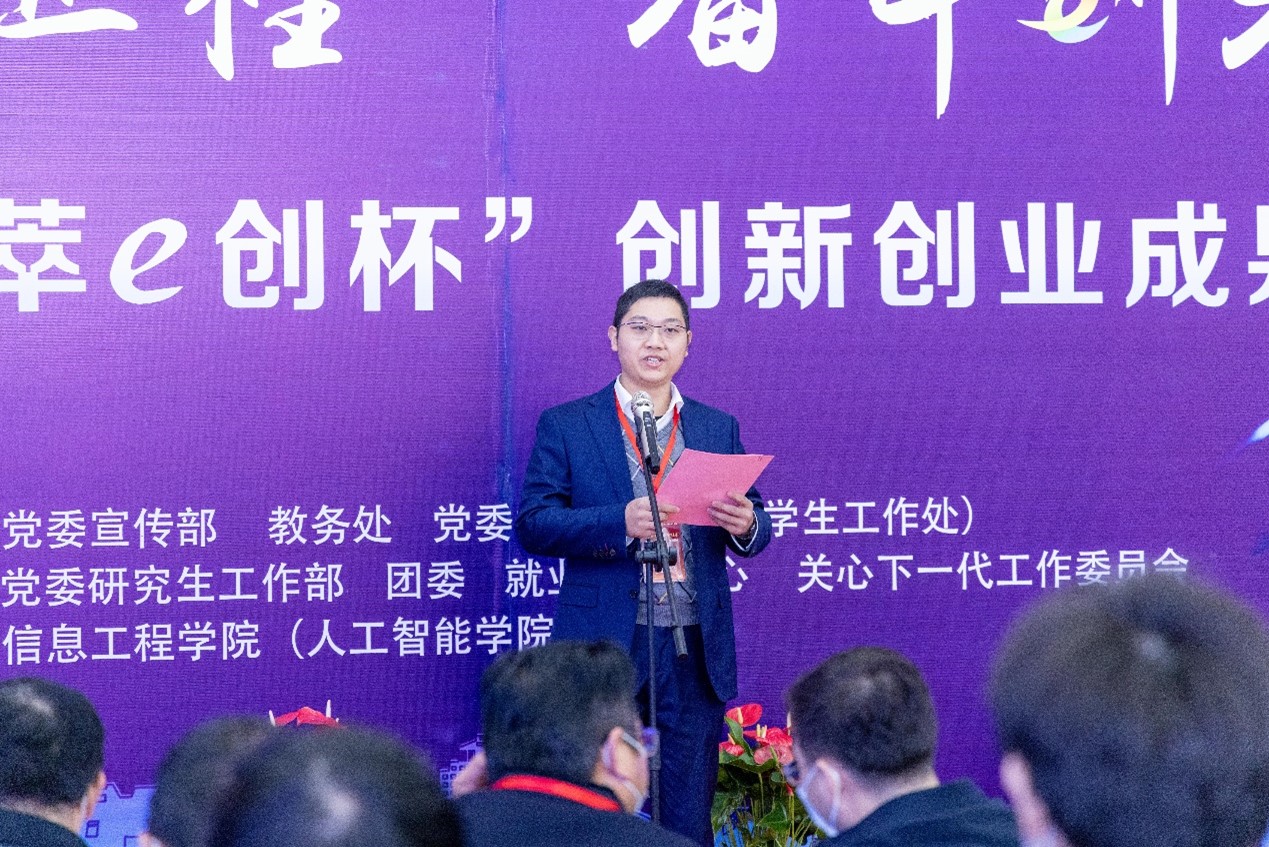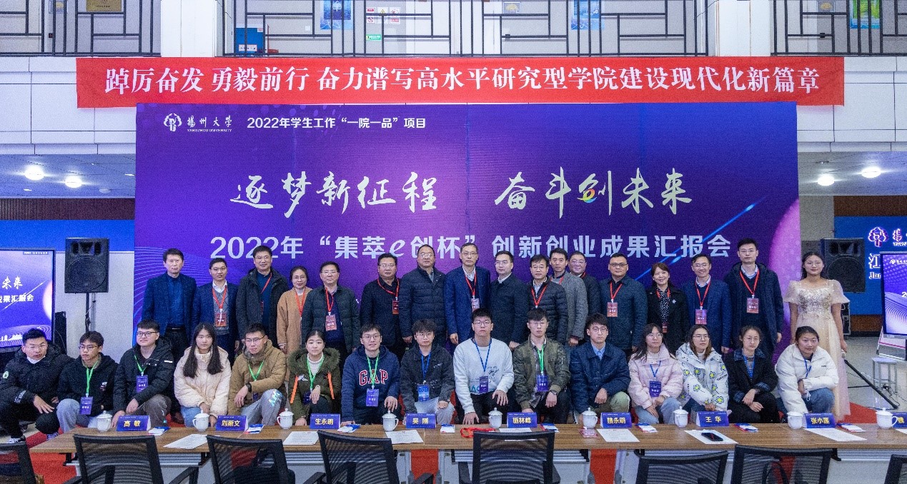 12月7日下午,学院在电工电子教学实验中心通过线上线下相结合的方式举行“逐梦新征程,奋斗创未来”2022年“集萃e创杯”大学生创新创业成果汇报会。校党委学生工作部部长、学生工作处处长施林峰,党委研究生工作部部长吴刚,保卫部部长、保卫处处长、人武部部长姚永明,离退休党工委书记、校关工委秘书长生永明,党委组织部副部长王华,党委宣传部副部长刘斯文,后勤保障处副处长张小莲,海外教育学院党支部副书记、副院长高敏,校团委副书记魏源,扬州电信邗江区局副总经理刘发祥,扬州电信人力资源部总经理姜标,扬州电信网络部副总经理郑云松,扬州电信市场部副总经理戴永骞,江苏省知识管理与智能服务工程研究中心主任、信息工程学院(人工智能学院)原院长李斌,我院院长孙小兵,党委副书记崔益军,副院长闵海强,学院各专业部主任、副主任,青年教师代表,班主任代表出席活动。