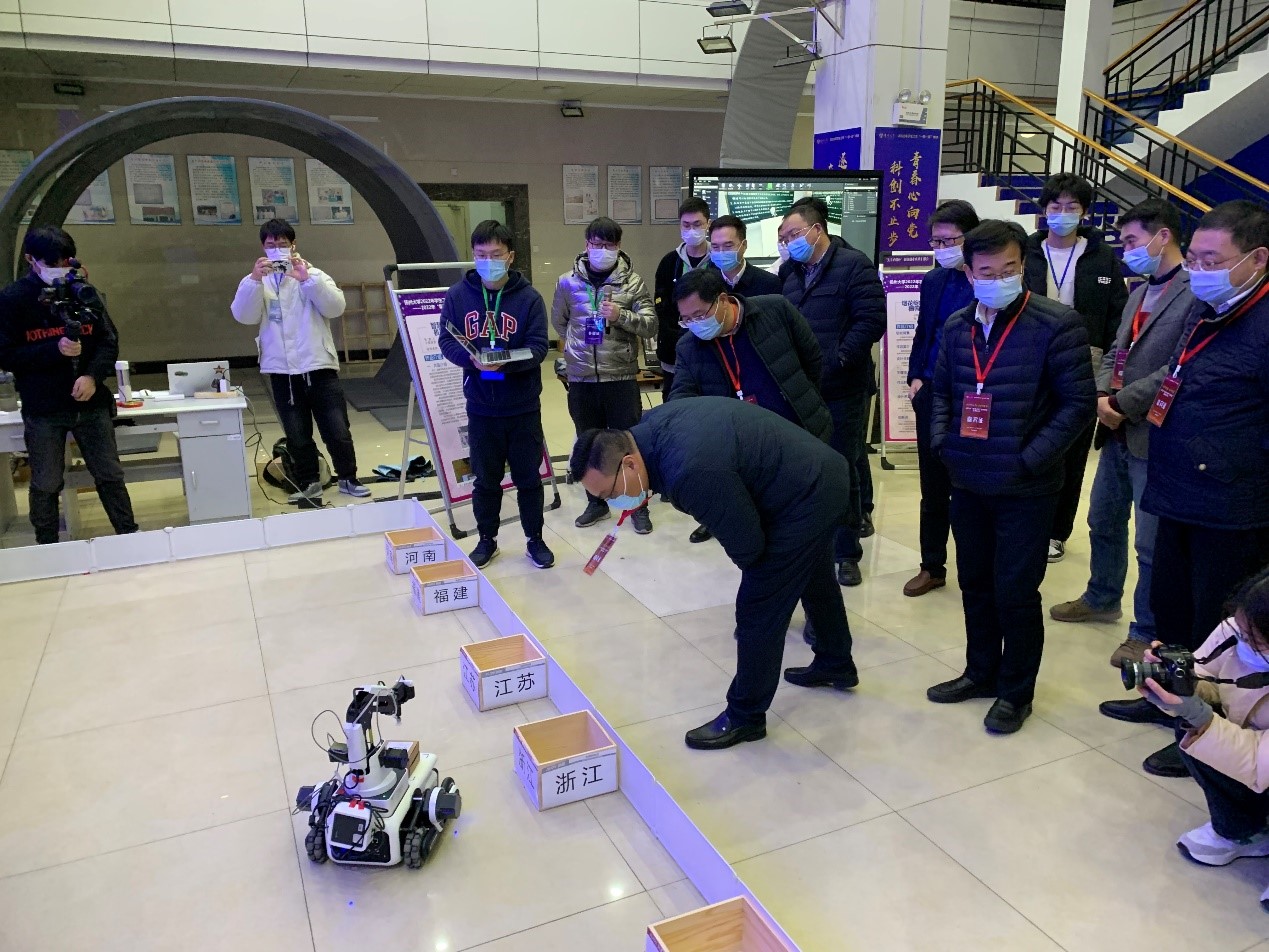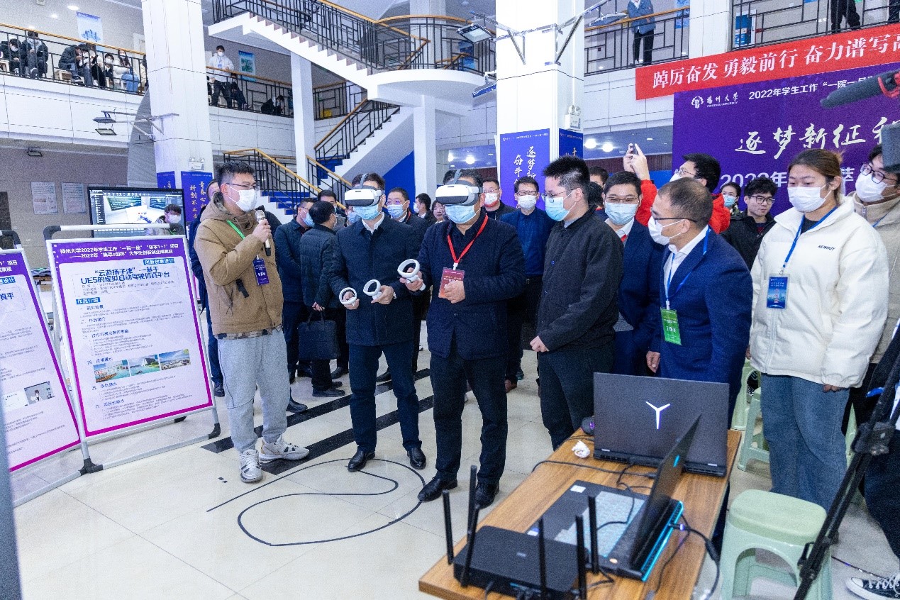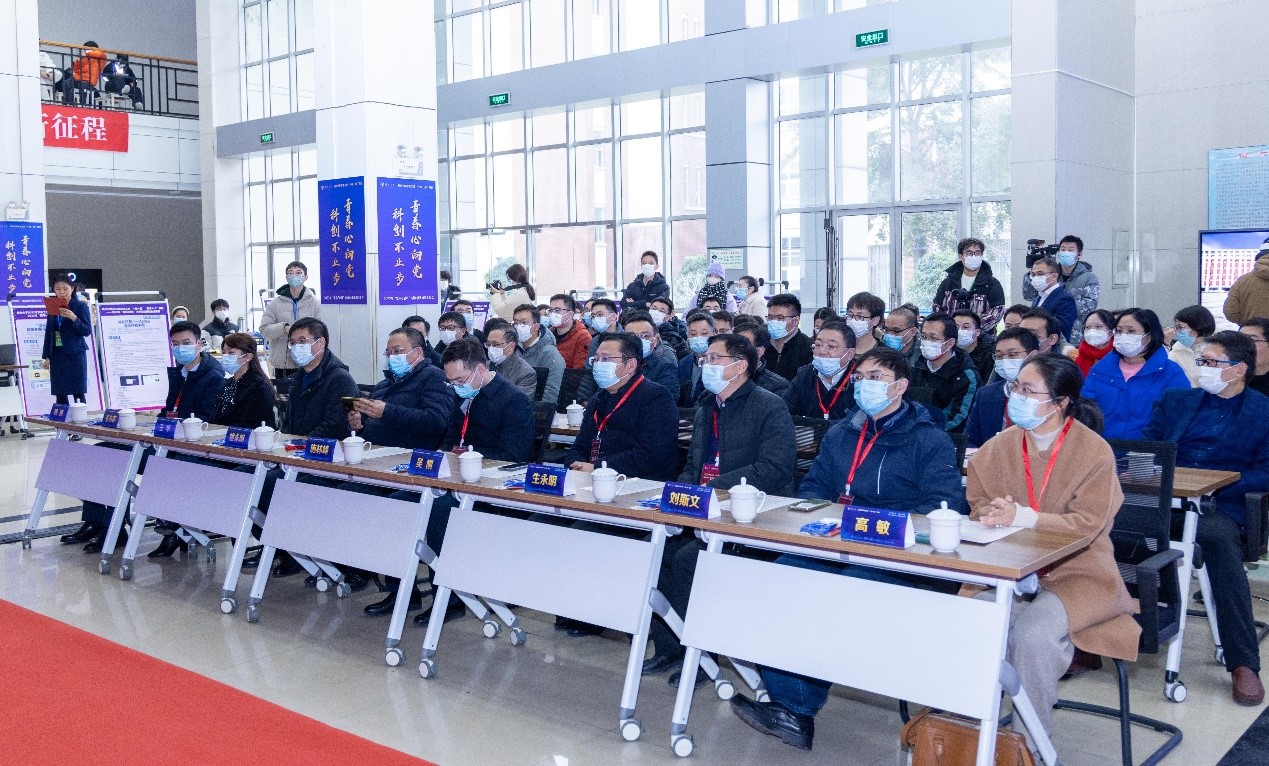 12月7日下午,学院在电工电子教学实验中心通过线上线下相结合的方式举行“逐梦新征程,奋斗创未来”2022年“集萃e创杯”大学生创新创业成果汇报会。校党委学生工作部部长、学生工作处处长施林峰,党委研究生工作部部长吴刚,保卫部部长、保卫处处长、人武部部长姚永明,离退休党工委书记、校关工委秘书长生永明,党委组织部副部长王华,党委宣传部副部长刘斯文,后勤保障处副处长张小莲,海外教育学院党支部副书记、副院长高敏,校团委副书记魏源,扬州电信邗江区局副总经理刘发祥,扬州电信人力资源部总经理姜标,扬州电信网络部副总经理郑云松,扬州电信市场部副总经理戴永骞,江苏省知识管理与智能服务工程研究中心主任、信息工程学院(人工智能学院)原院长李斌,我院院长孙小兵,党委副书记崔益军,副院长闵海强,学院各专业部主任、副主任,青年教师代表,班主任代表出席活动。