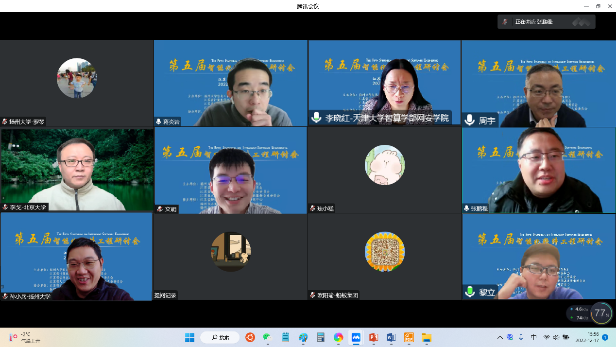 第五届智能化软件工程研讨会于12月17日以线上方式成功召开。本次研讨会由扬州大学信息工程学院(人工智能学院)、江苏省计算机学会计算机软件专业委员会、江苏省信息技术应用学会软件技术专业委员会和江苏省人工智能学会知识工程与智能服务专业委员会联合主办,江苏省知识管理与智能服务工程研究中心、扬州市大数据分析与知识服务重点实验室、扬州市计算机学会协办。