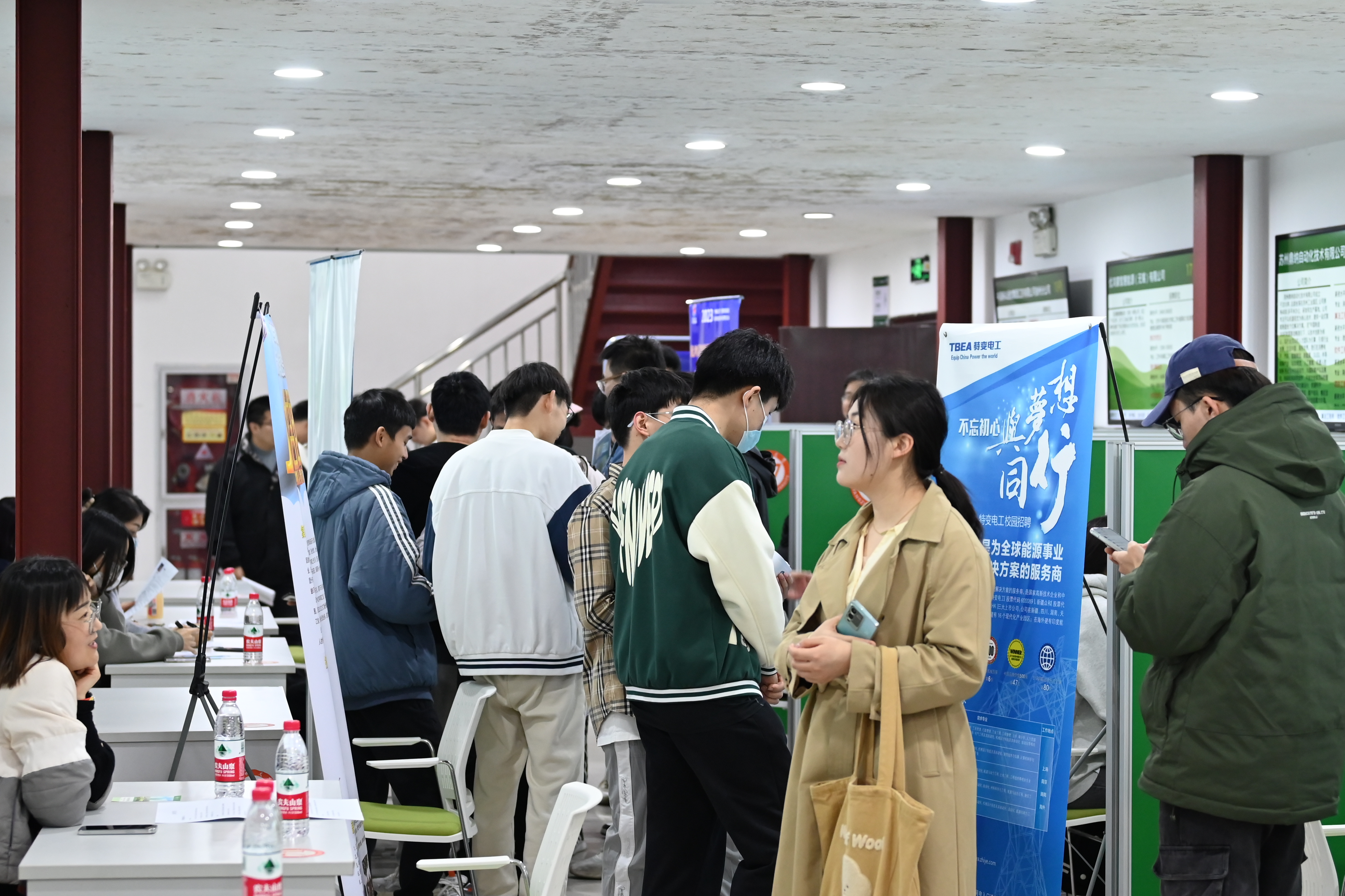本次招聘会邀请了量子科技长三角产业创新中心、中国移动通信集团江苏有限公司徐州分公司、无锡华润微电子有限公司、南京拓界信息技术有限公司等50多家企事业单位参会,提供岗位200余个,毕业生需求人数超过1800人。现场氛围热烈,毕业生们积极投递简历,与企业招聘人员交流,主动了解用人单位相关岗位技能需求及薪酬待遇等信息。