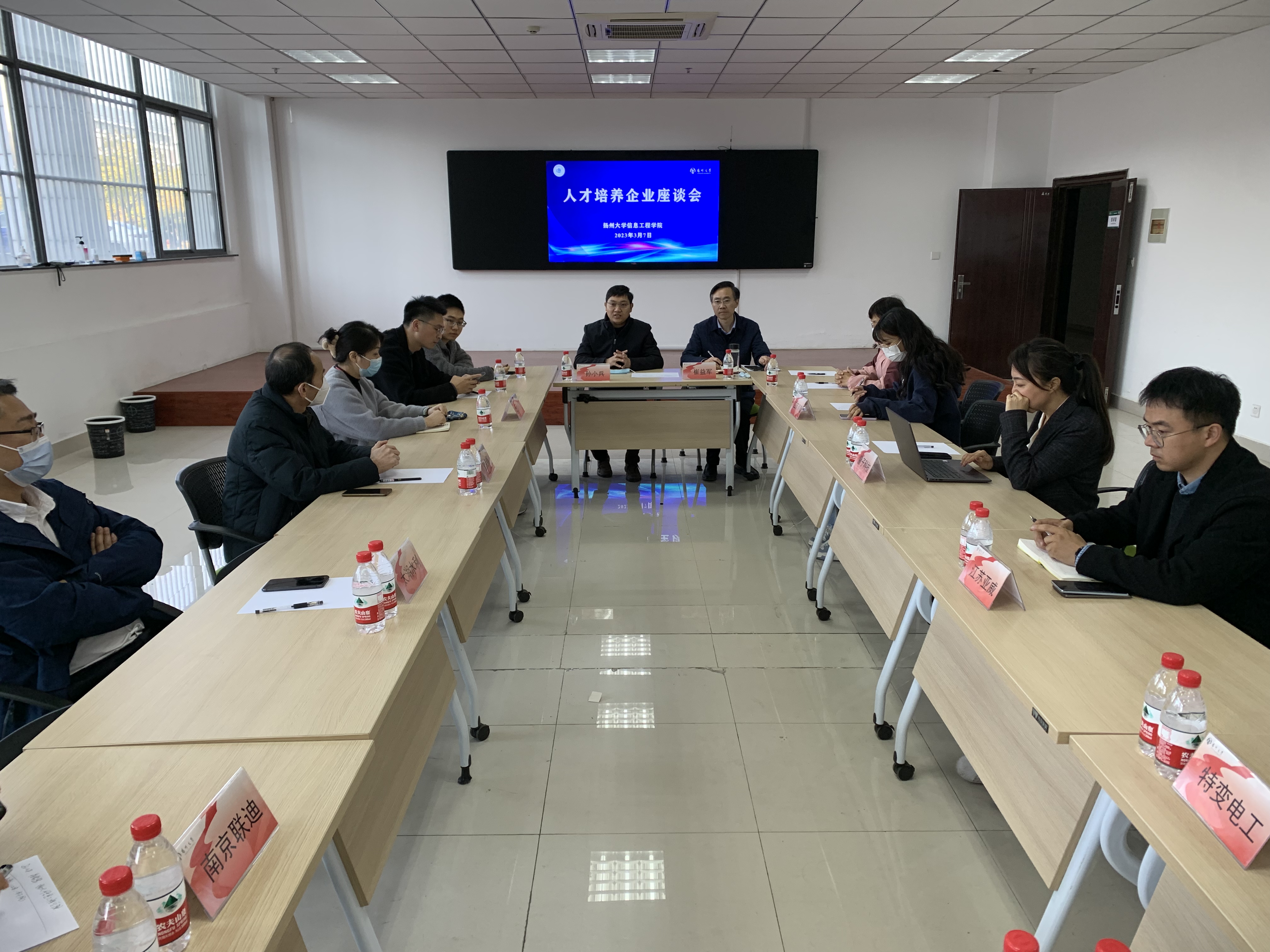 招聘会期间,为进一步搭建校企合作交流平台,促进企业用人需求与各系专业对接,不断提高人才培养的能力与水平,学院邀请部分企业代表参加校企合作座谈会, 院长孙小兵重点介绍了学院的专业建设、人才培养等情况。座谈交流环节,企业代表重点围绕企业人才需求、合作领域等开展讨论,党委副书记崔益军及专业部主任就人才培养与就业衔接、实习基地建设、横向课题合作等方面与企业进行了交流。
