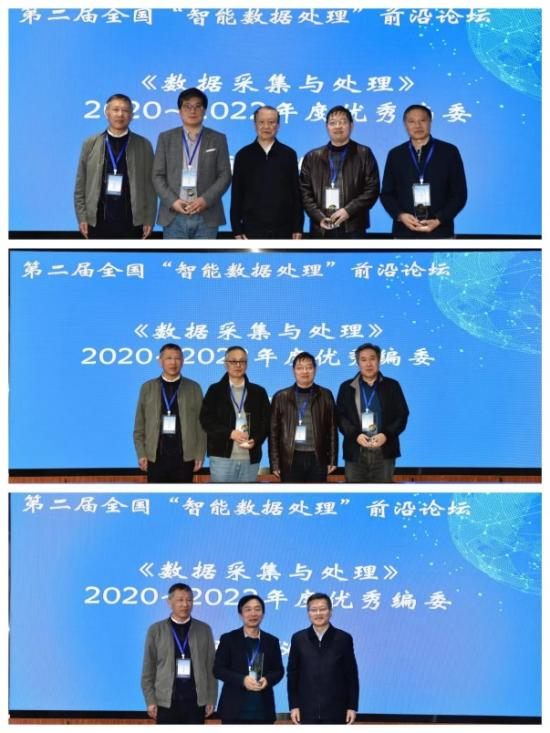 开幕式颁奖环节由《数据采集与处理》副主编、南京大学刘晓峻教授主持。贲德院士、南航吴启晖副校长、我校赵文明副校长为《数据采集与处理》2020~2022年优秀编委颁发奖杯。