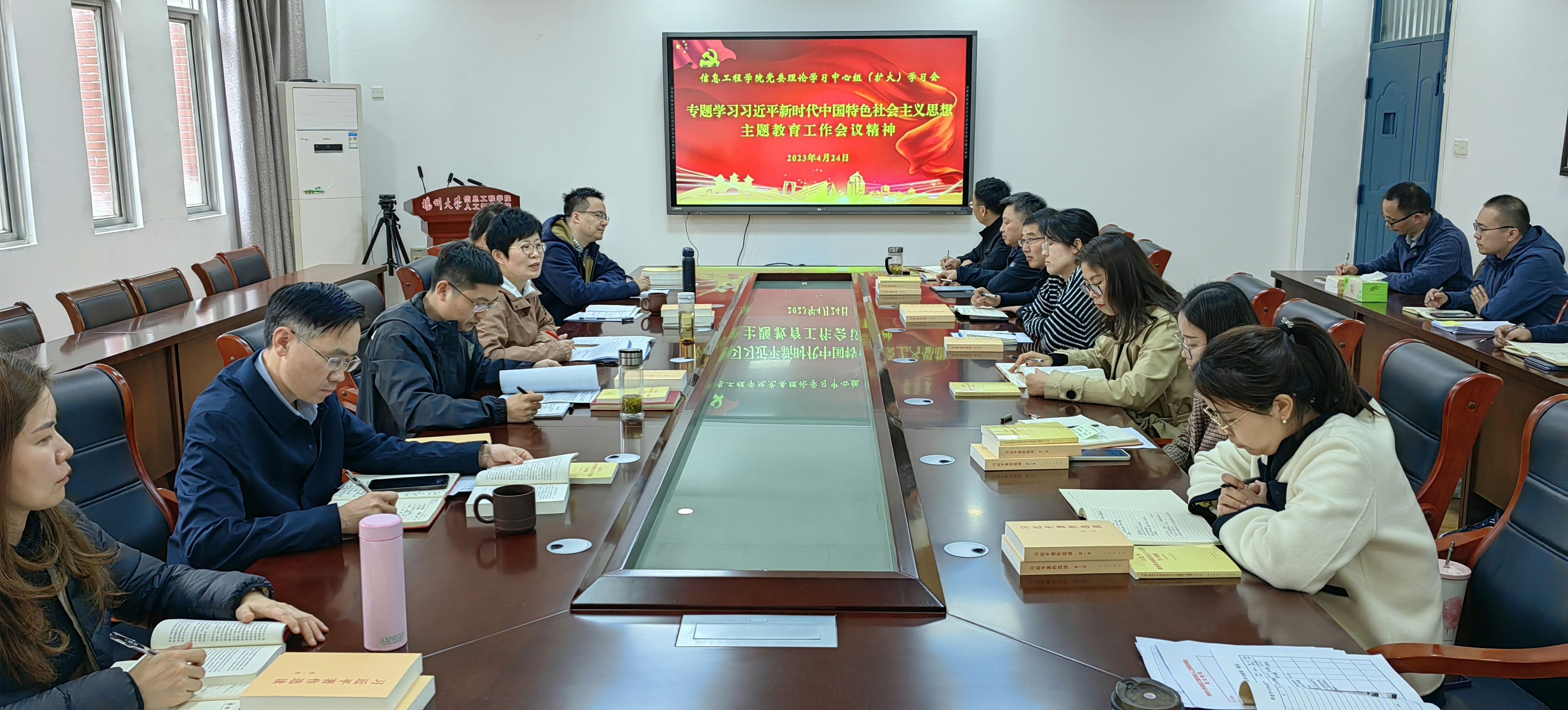 4月24日上午,学院在305会议室召开学习贯彻习近平新时代中国特色社会主义思想主题教育动员会。院党委书记吕红梅主持会议并作动员讲话,院长孙小兵出席会议并作领学,院党委副书记崔益军传达学校主题教育布置会精神及工作实施方案,副院长闵海强、裔扬、刘维出席会议。