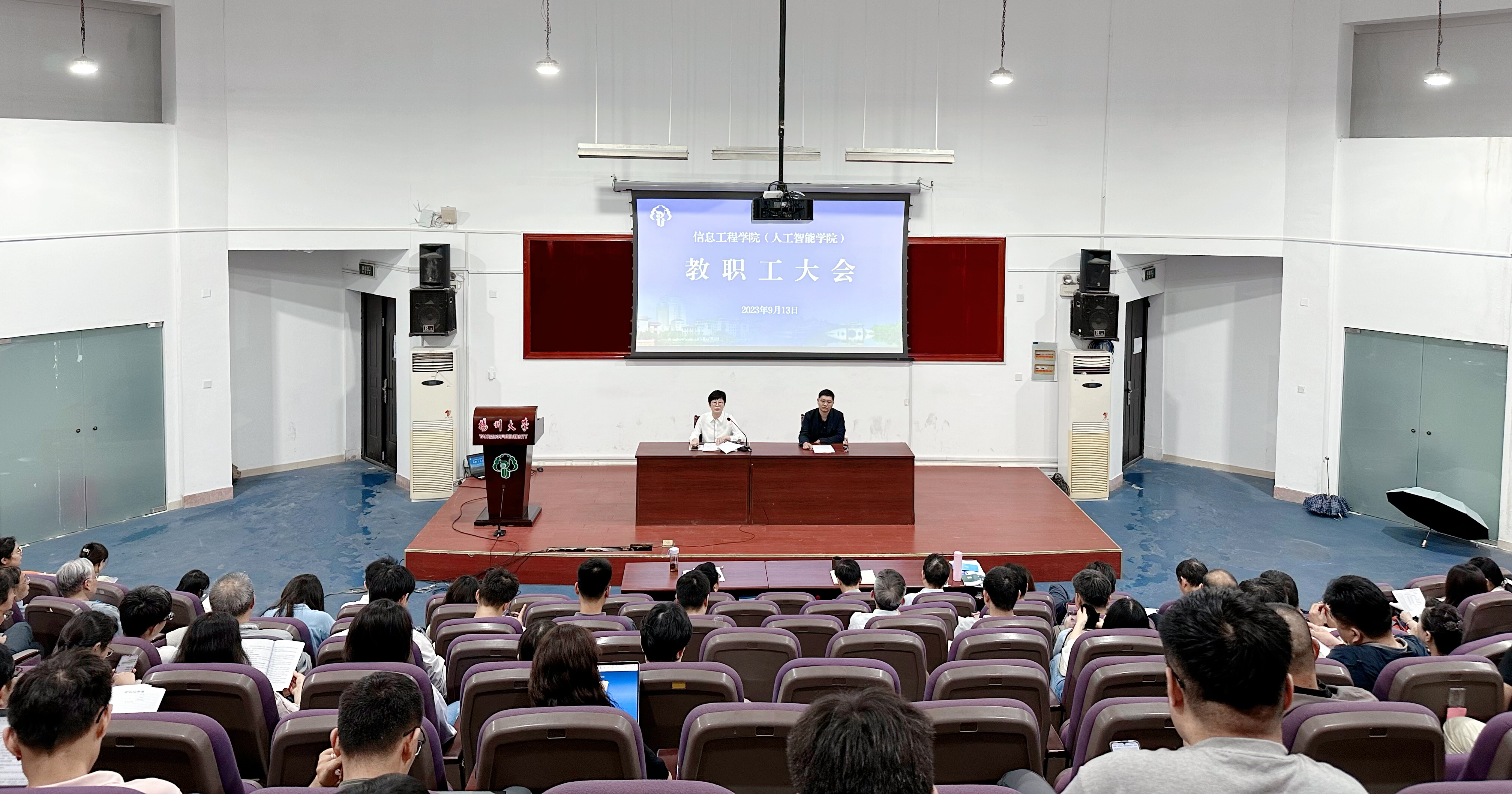 9月13日下午,学院在东报告厅召开全体教职工大会。院党委书记吕红梅主持会议并讲话,院长孙小兵作工作报告,全体院领导、教职工参加会议。
