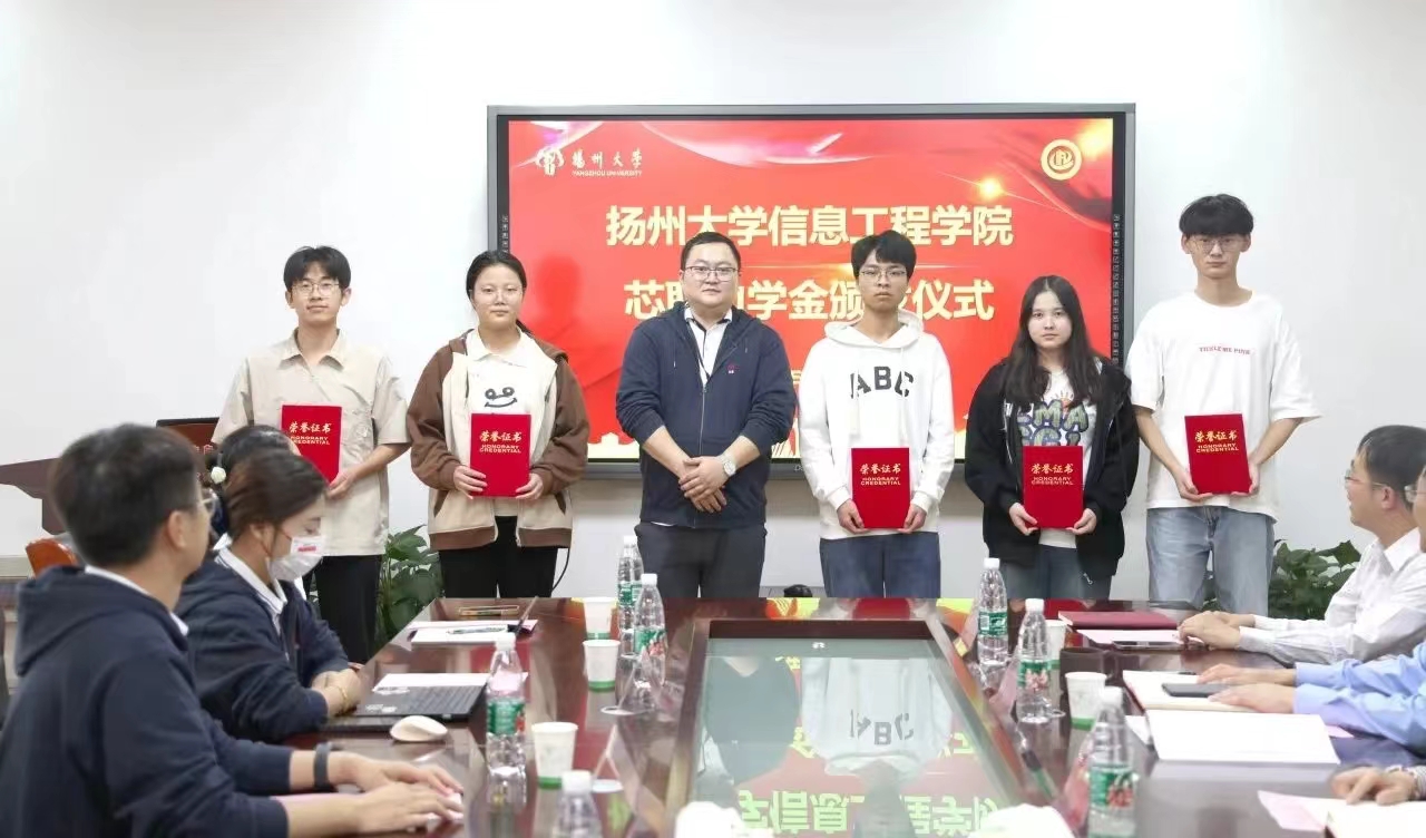 会议伊始,崔益军副书记对上阶段芯享奖助学金具体实施情况进行说明,并邀请沈聪聪为董事长个人捐赠“芯聪助学金”获得者颁发证书。奖助学金获得学生代表上台发言,感谢芯享科技及沈董的捐助并汇报了目前的学习成果。