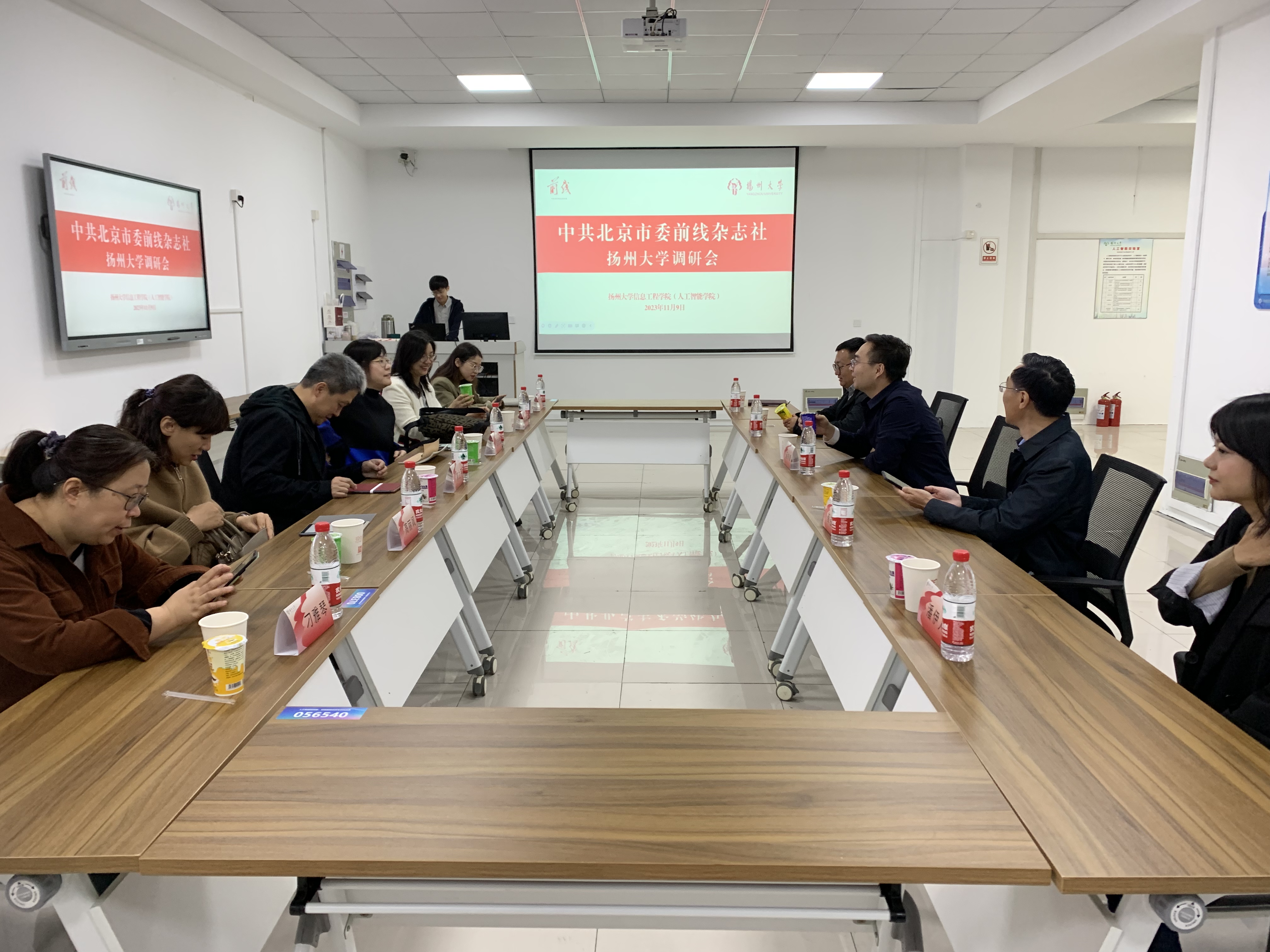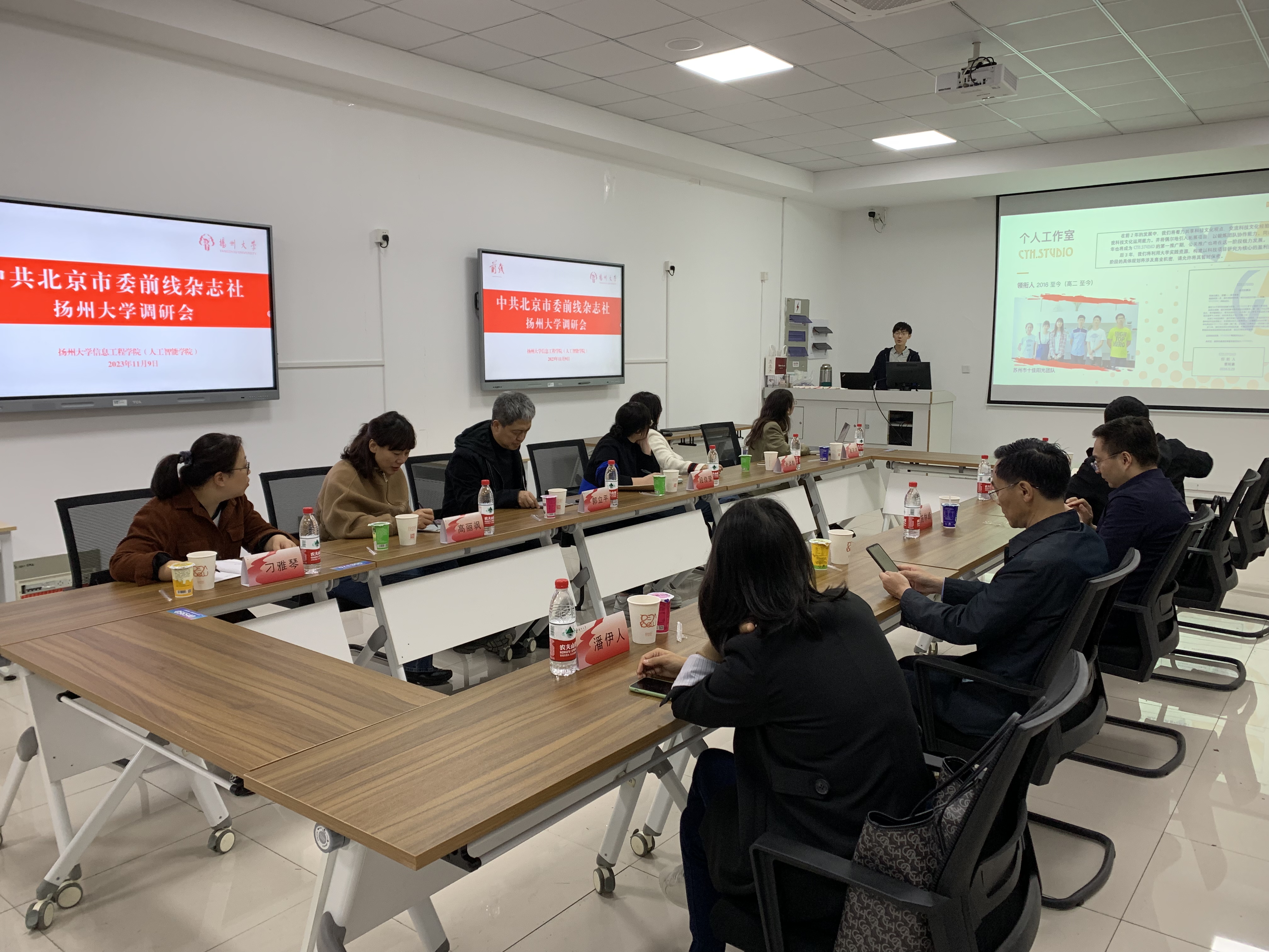11月9日,为深入了解我校推进落实“时代新人铸魂工程”的经验成效,挖掘优秀大学生典型先进实际,“大学生年度人物”推选展示活动承办方之一——中共北京市委前线杂志社市场发行部主任郭立平,总编室副主任段佳莹,社会编辑部副主任高丽飒、编辑朴添勤和刁雅琴,融媒体发展部编辑崔天琪等一行于来我校考察调研。