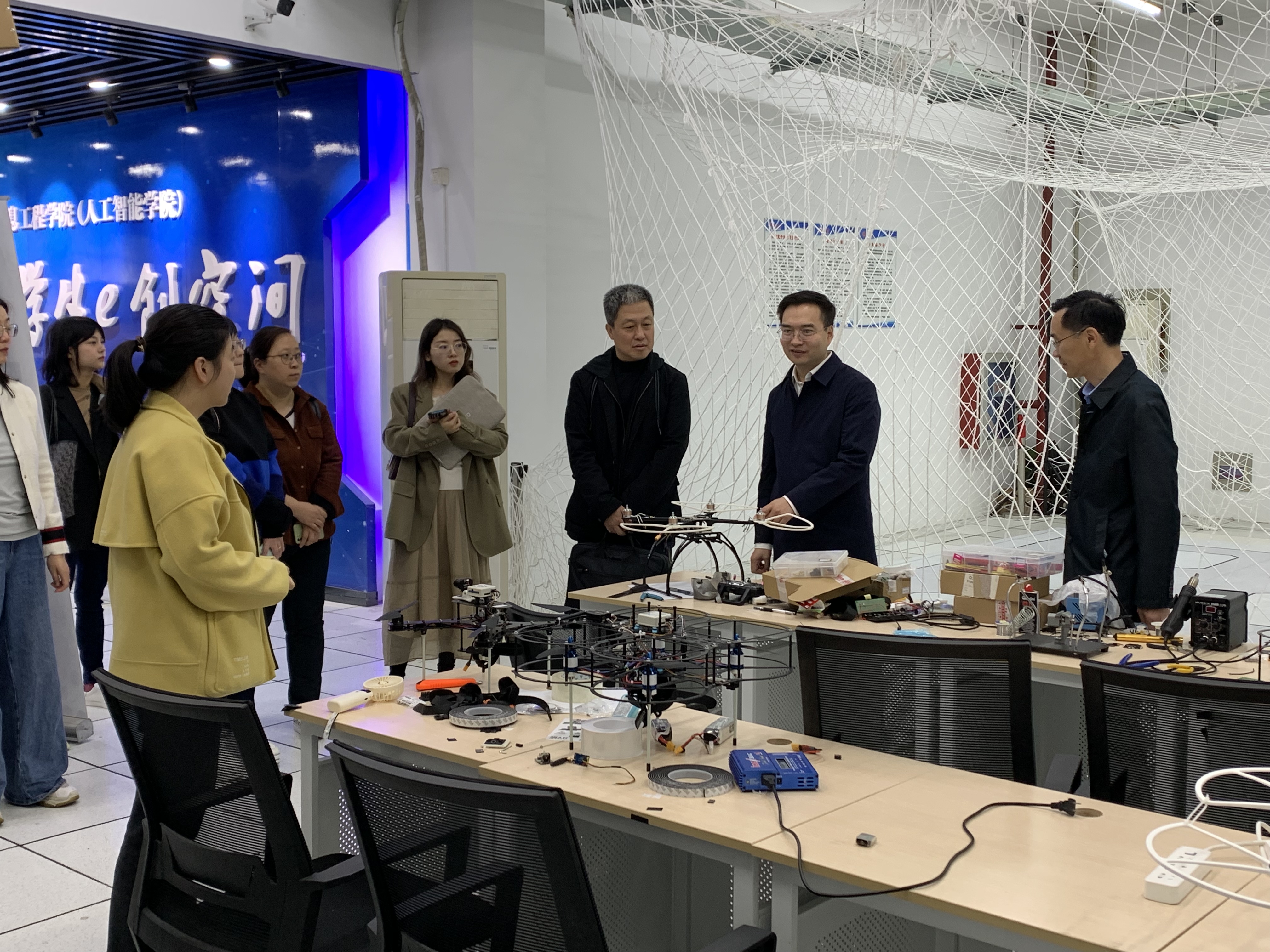 调研组第一站来到我院考察了大学生“e创空间”、江苏省大学生创新创业实践教育中心、人工智能实验室,学院党委副书记崔益军、团委书记(学工办主任)张海兵向调研组介绍了学院大学生科技创新工作开展情况。学院研究生曹裕豪围绕叮当科技的创办背景、技术成果、社会贡献、市校支持等方面汇报了创业项目和个人创业事迹。
