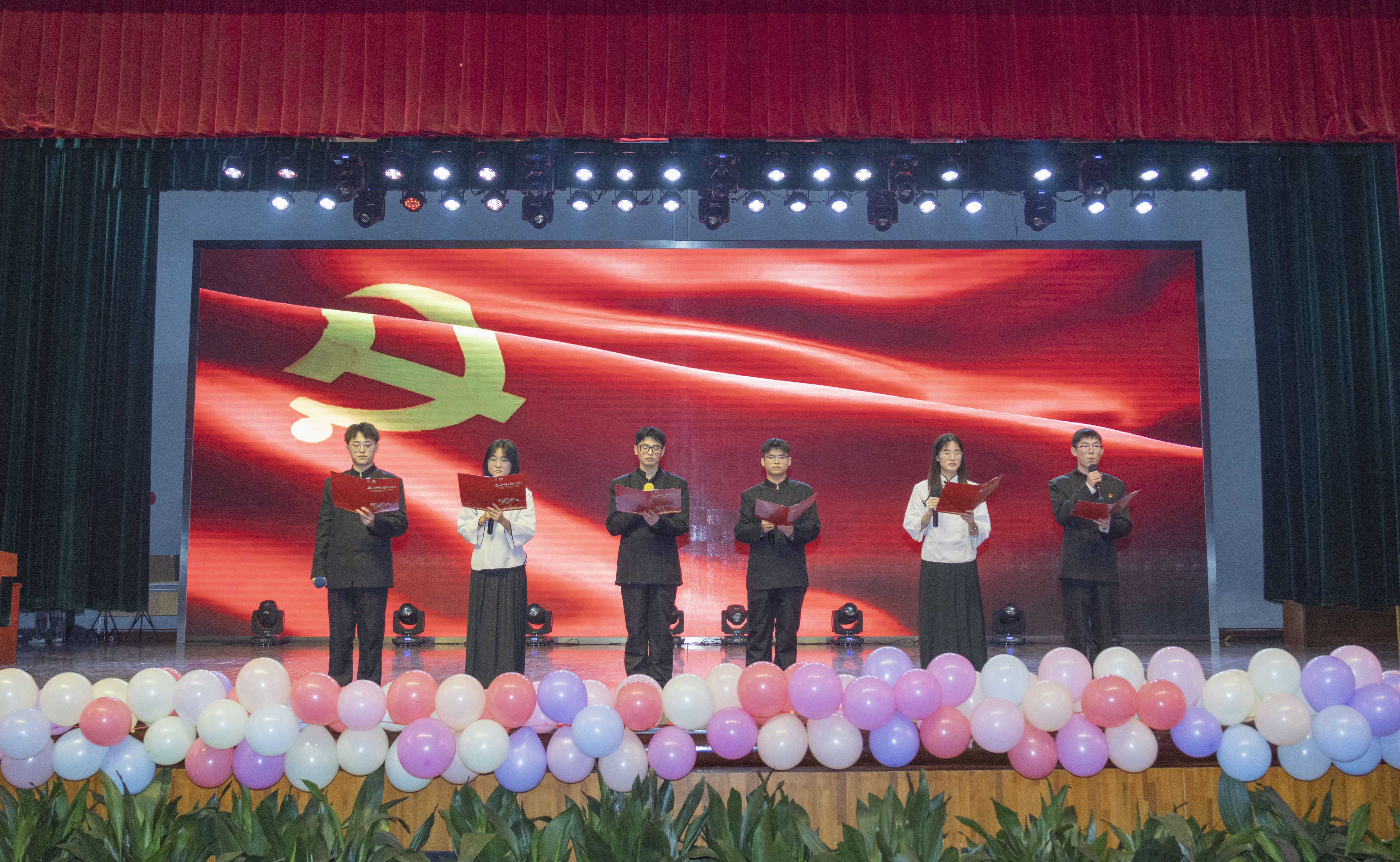 最后,进入班团风采大赛决赛的8个班级各展风采,经过激烈角逐,计科2302班的舞台剧《破晓》、信研2301的朗诵《党旗上写的是什么》获得特等奖,电子2301班的影子戏《扬大青春故事》、软件2301的舞蹈串烧与歌曲《精忠报国》、卓越2301的相声《活力校园》与歌舞串烧获得一等奖。
