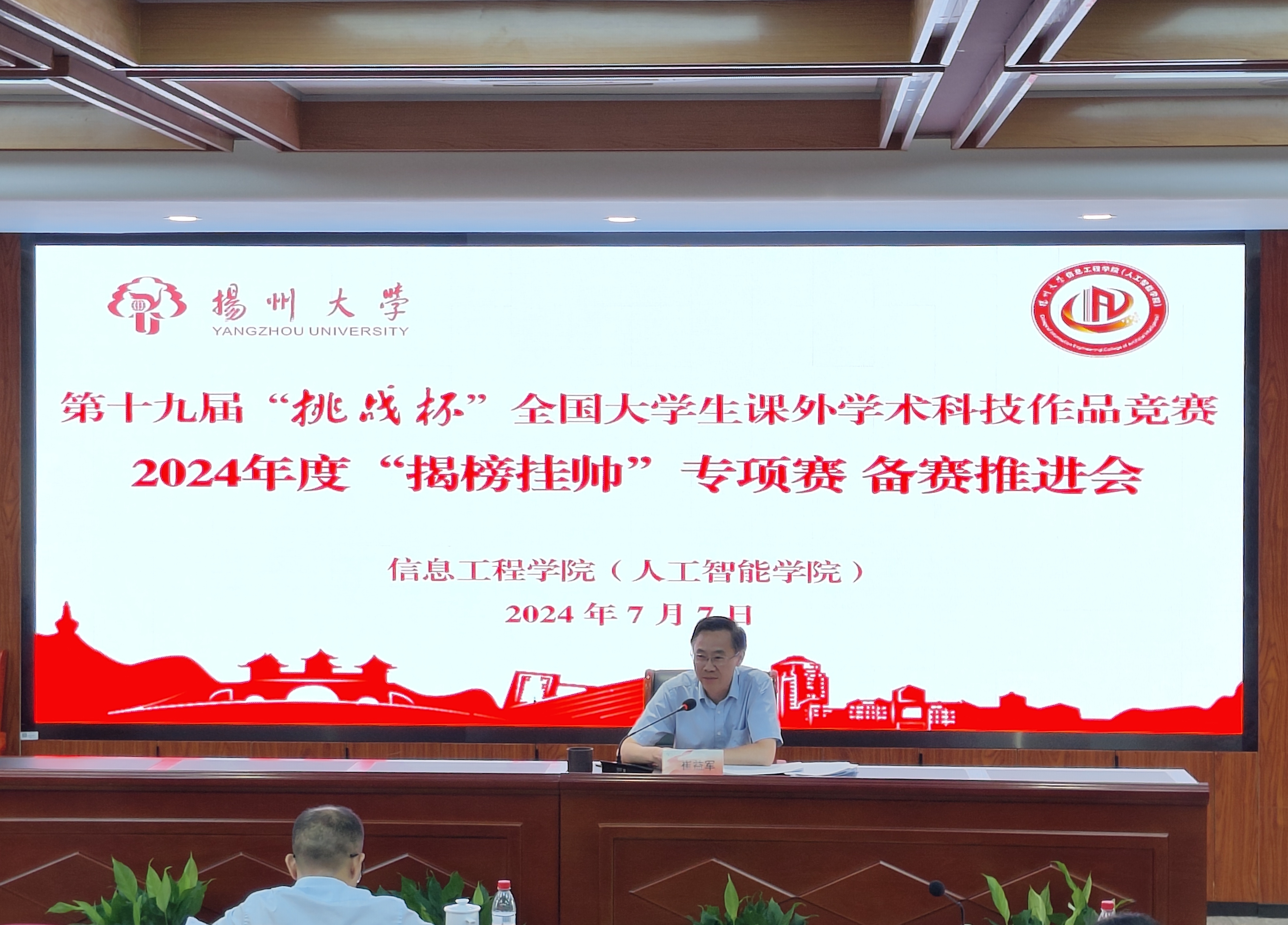 7月7日上午,学院在三楼报告厅举行第十九届“挑战杯”全国大学生课外学术科技作品竞赛2024年度“揭榜挂帅”专项赛备赛推进会。院党委副书记崔益军出席会议,院团委书记张海兵主持会议。