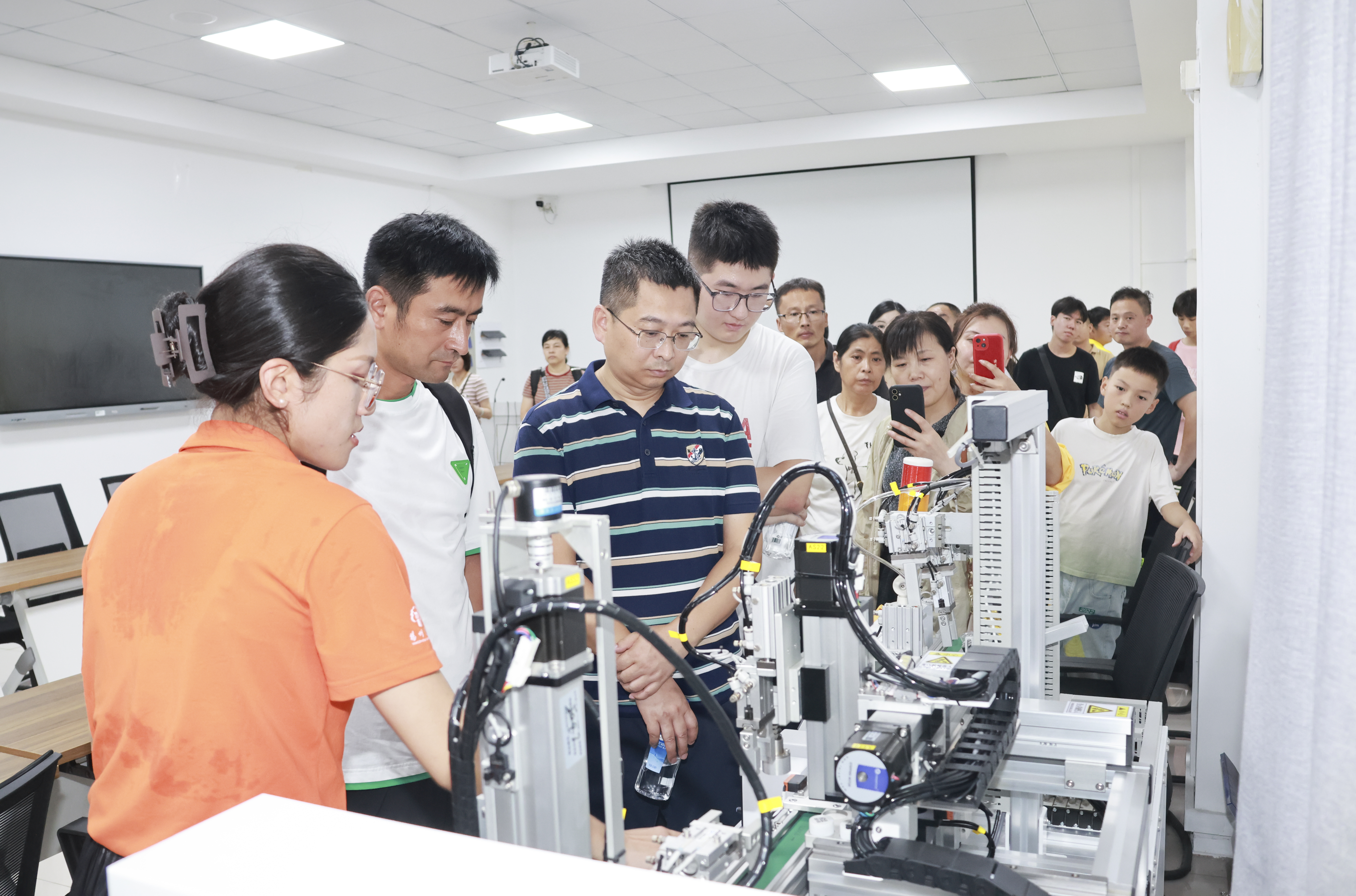 最后,崔益军提出了家校同心,合力致远,花开有时,携手共育的期盼。会议开始前,在学院专任老师带领下,新生家长们依次参观了学院电工电子中心等,会后是老师与家长的交流互动环节,家长们表现出了很高的积极性,与辅导员和班主任积极交流沟通。