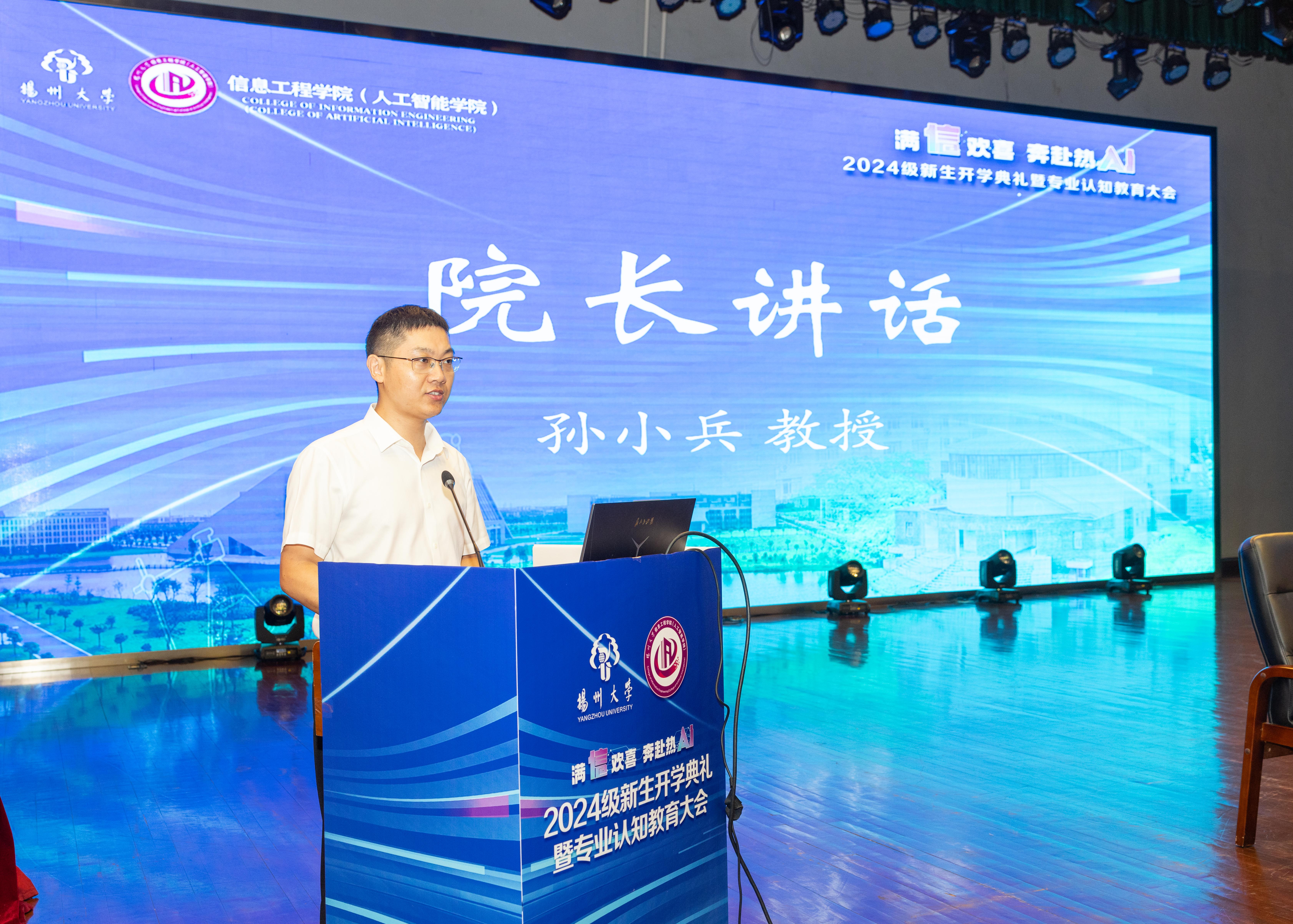 9月1日上午,学院在文体馆三楼小剧场隆重举行2024级新生开学典礼暨专业认知教育大会。院党委书记吕红梅、院长孙小兵、院党委副书记崔益军、副院长闵海强、副院长裔扬、副院长刘维、院综合办公室主任谢兴兵、计算机科学与技术专业部主任朱毅、电子与通信工程专业部主任李春晓、自动化专业部主任方宇、计算机公共教学部主任梁磊、电工电子教学实验中心主任高锐、计算机科学与技术专业部副主任张佳乐、软件工程专业部副主任陈玮彤、计算机公共教学部副主任洪青青、院团委书记(学工办主任)张海兵等出席会议。本次大会由院党委副书记崔益军主持。