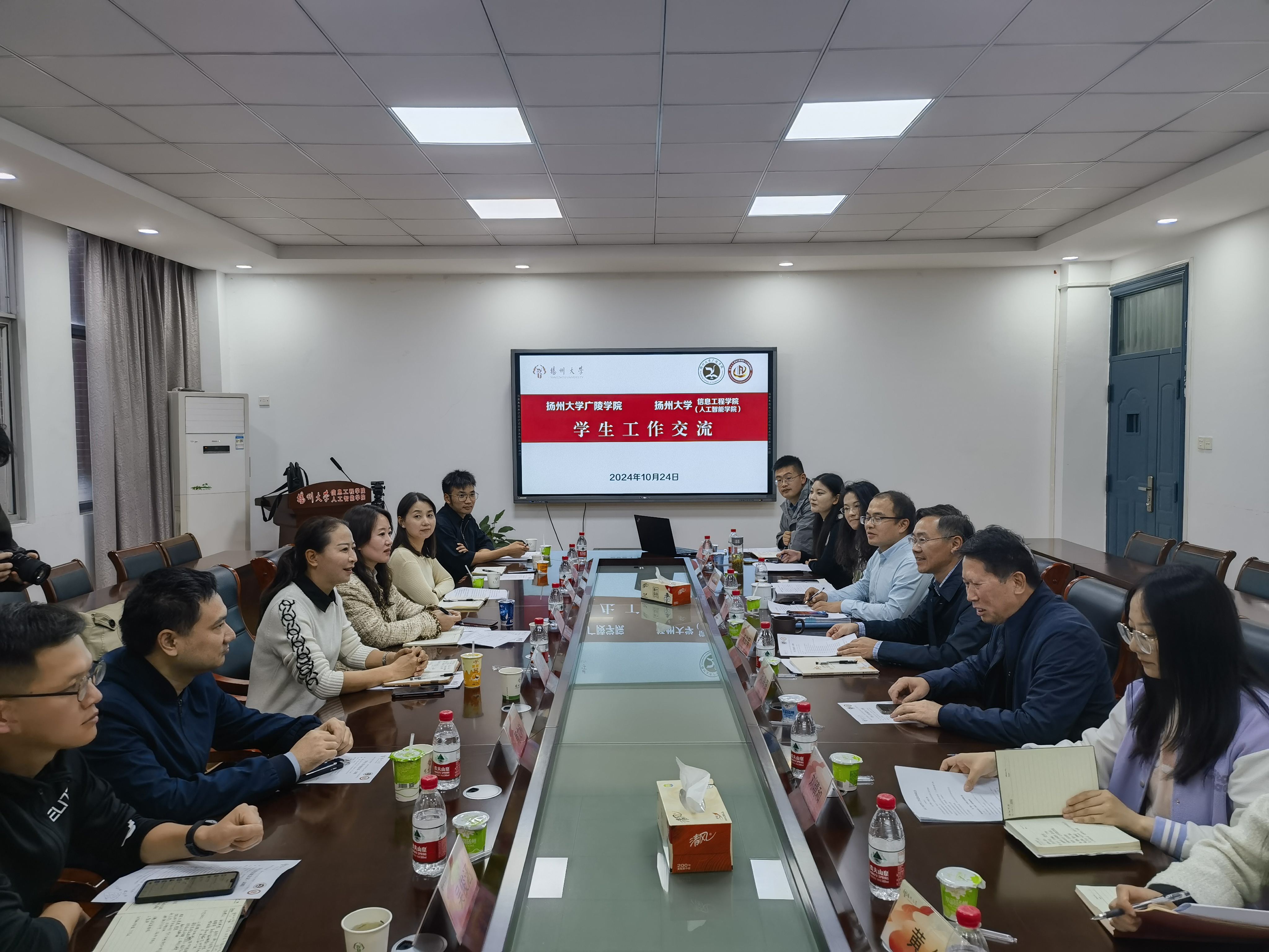 10月24日下午,扬州大学广陵学院机械电子工程系党总支书记(系主任)梁晓珊、党总支副书记张婷婷等一行来我院进行学生工作交流。学院党委副书记崔益军、副院长闵海强参加交流会。院团委书记(学工办主任)张海兵主持交流会。