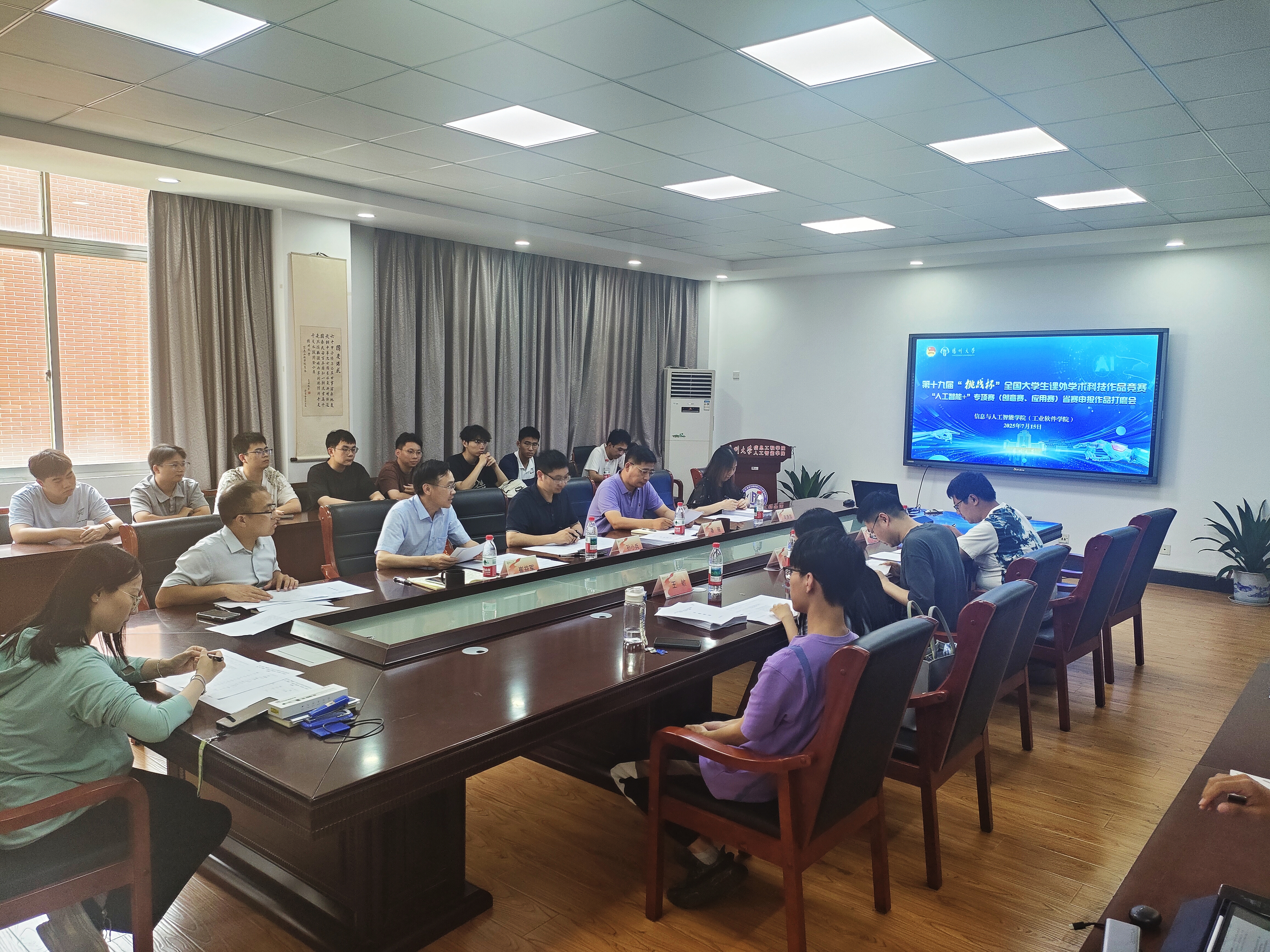 7月15日下午,学院在305会议室举行第十九届“挑战杯”全国大学生课外学术科技作品竞赛“人工智能+”专项赛(创意赛、应用赛)省赛申报作品打磨会。校研究生院常务副院长、信息与人工智能学院院长孙小兵,院党委书记潘骏出席会议。院党委副书记崔益军主持会议。
