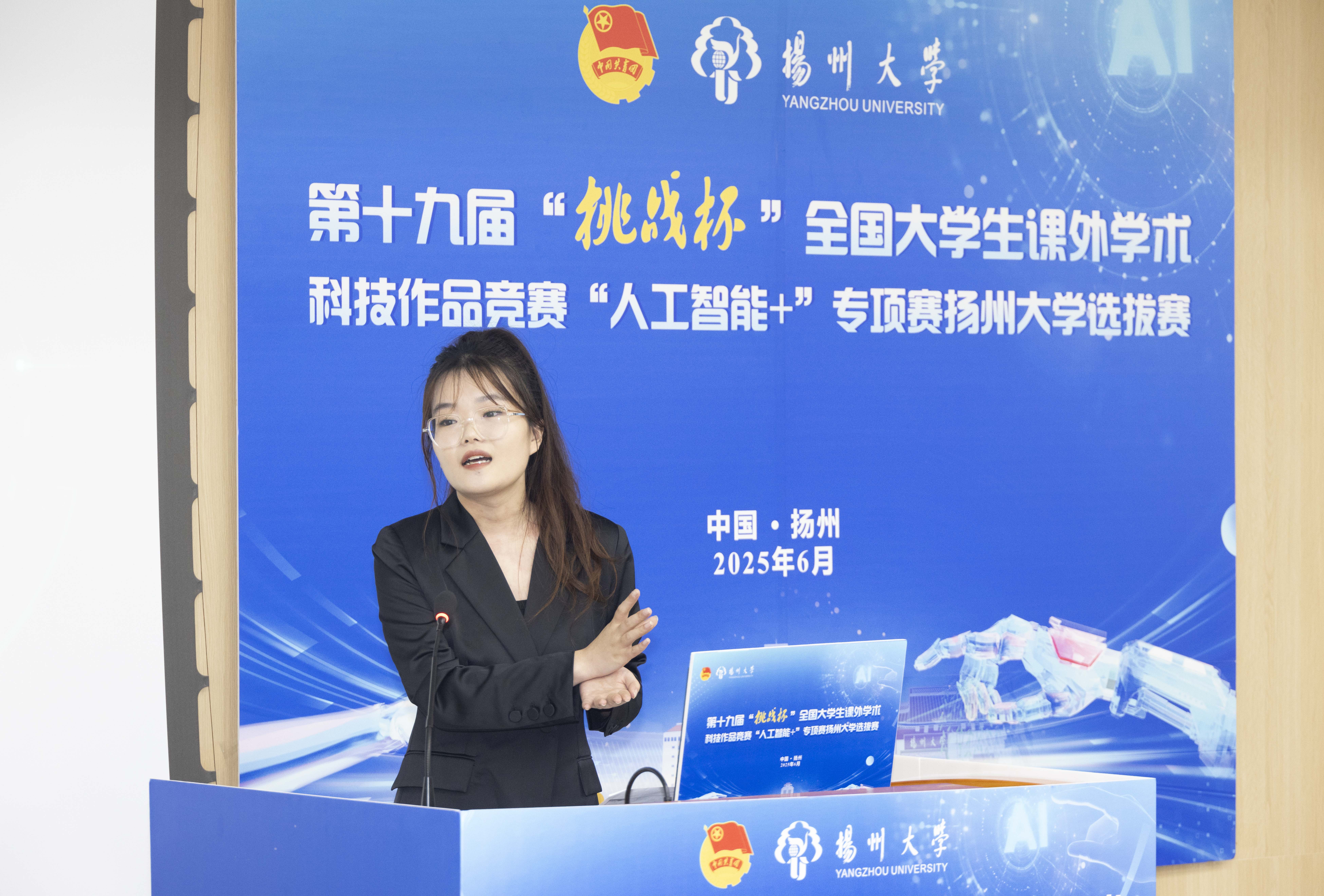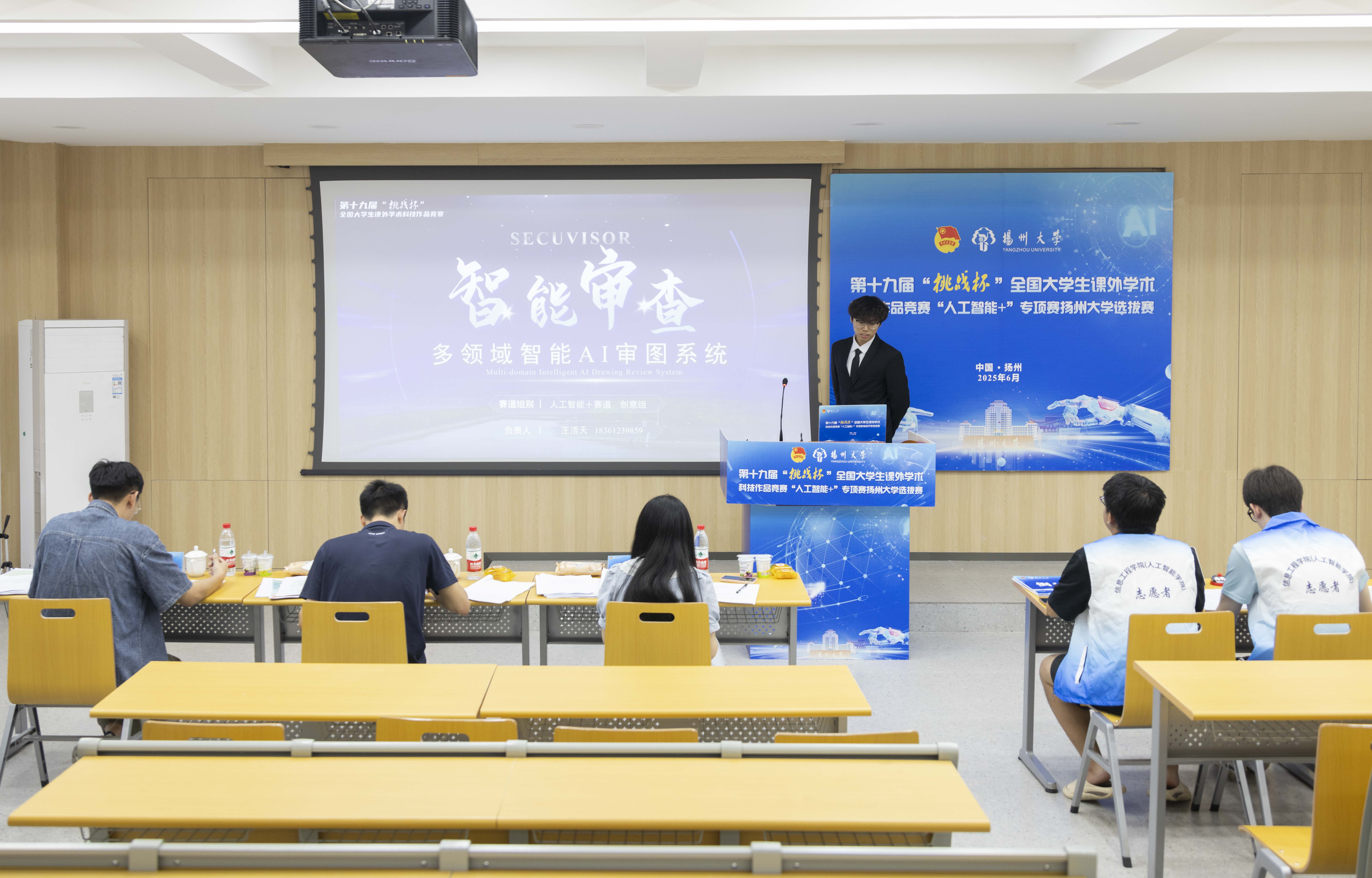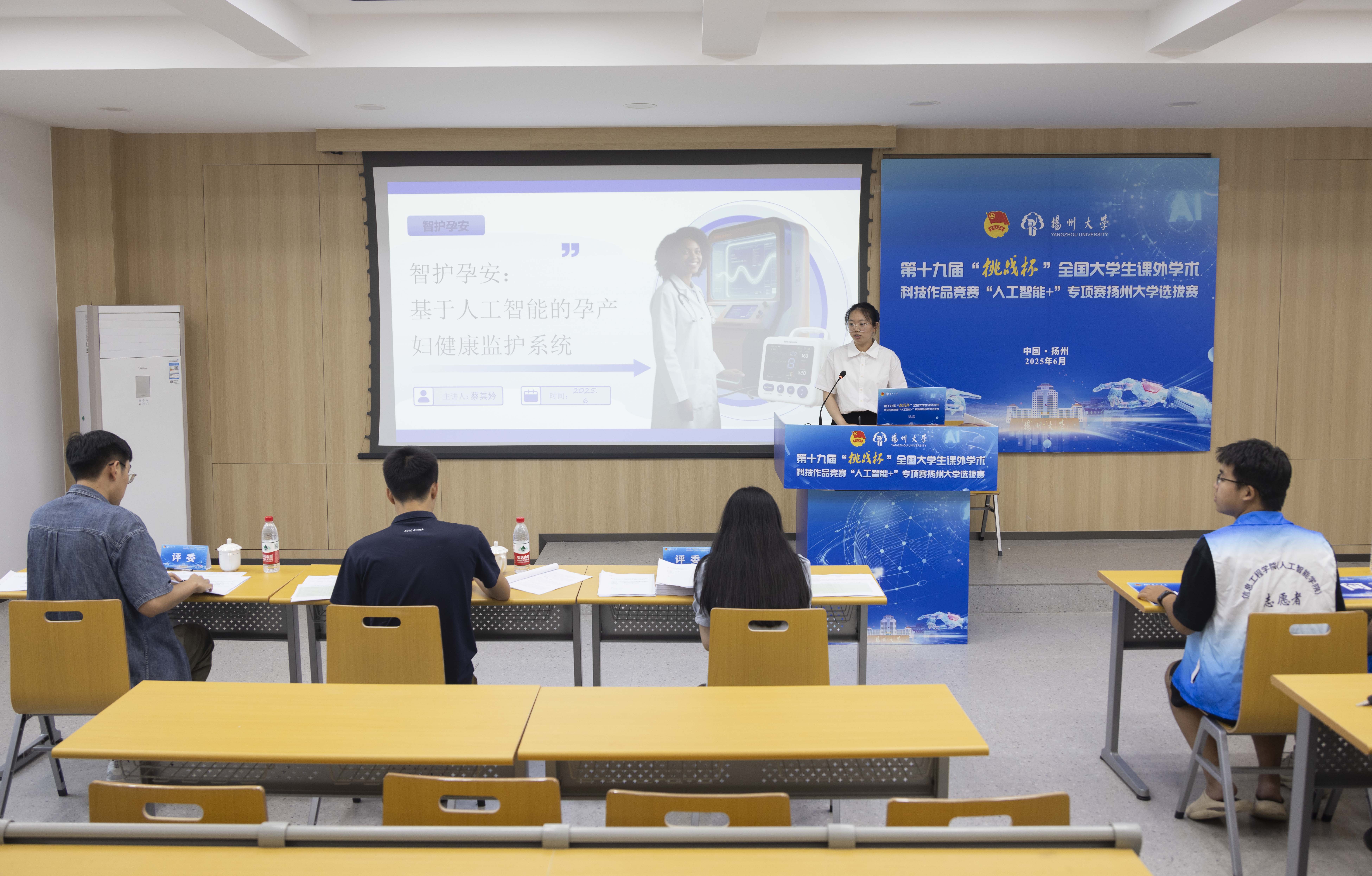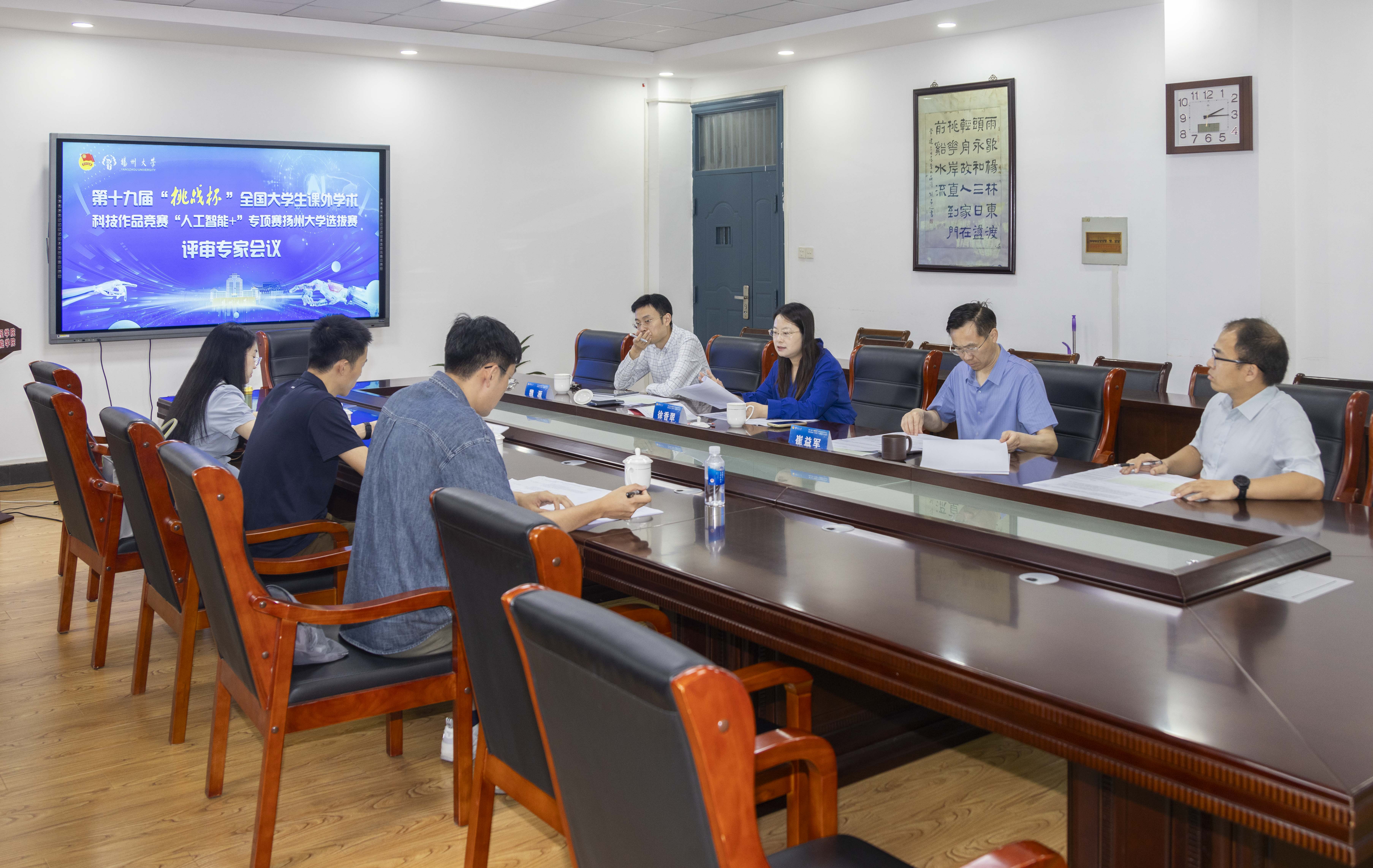 6月21日下午,由我院承办的第十九届“挑战杯”全国大学生课外学术科技作品竞赛“人工智能+”专项赛(创意赛、应用赛)扬州大学选拔赛在学院三楼报告厅举行。校团委副书记徐香翠、魏源,院党委副书记崔益军出席赛前评审专家会议。