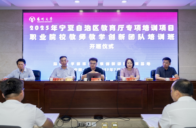 7月26日—31日,宁夏职业院校教师教学创新团队培训在我校瘦西湖校区举办。教育部国家级职教创新团队建设项目秘书处副主任刘冬,宁夏教育厅职成处处长马小燕、学校继续教育学院院长凌云志、我院党委书记潘骏出席开班仪式。