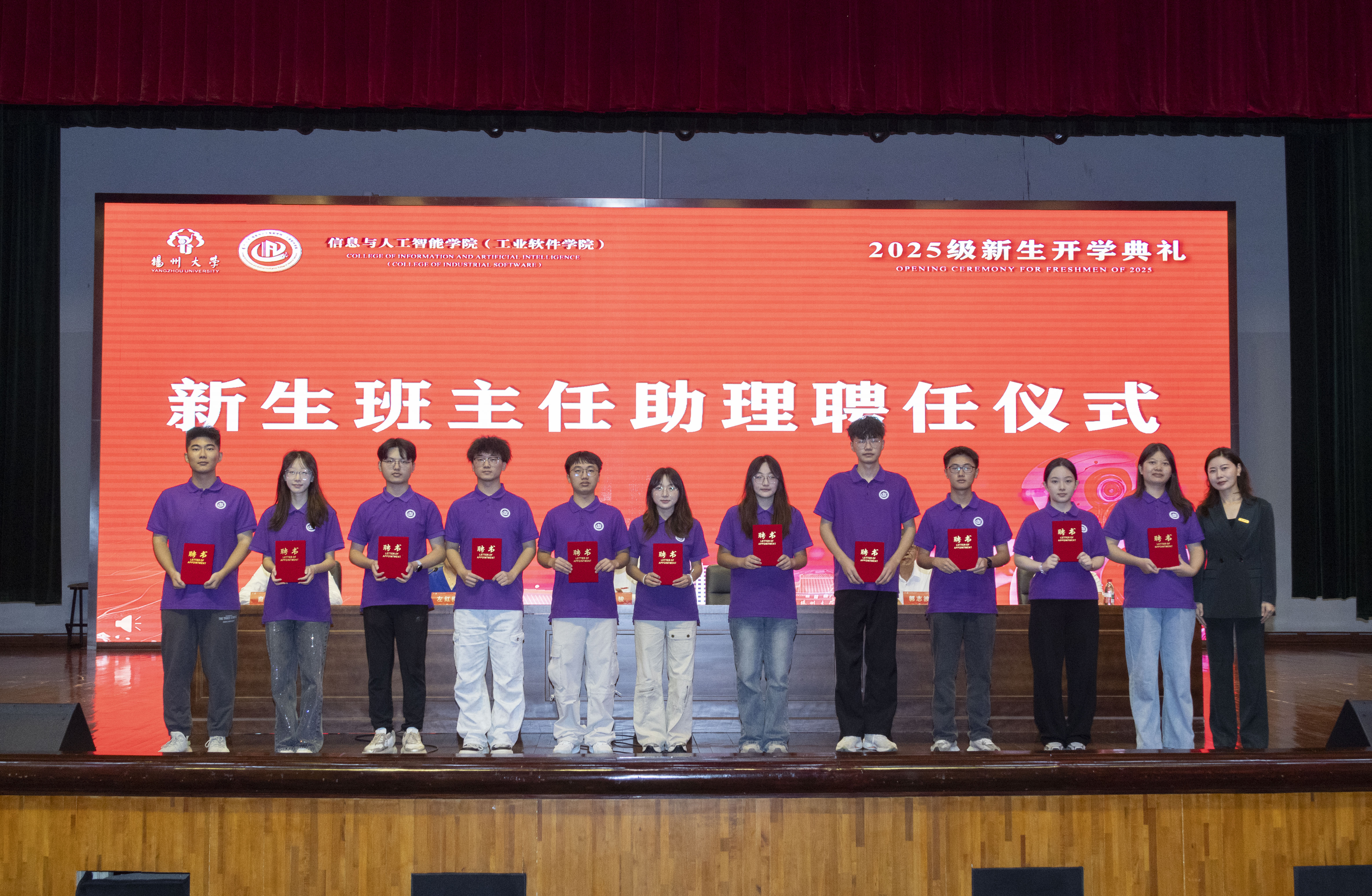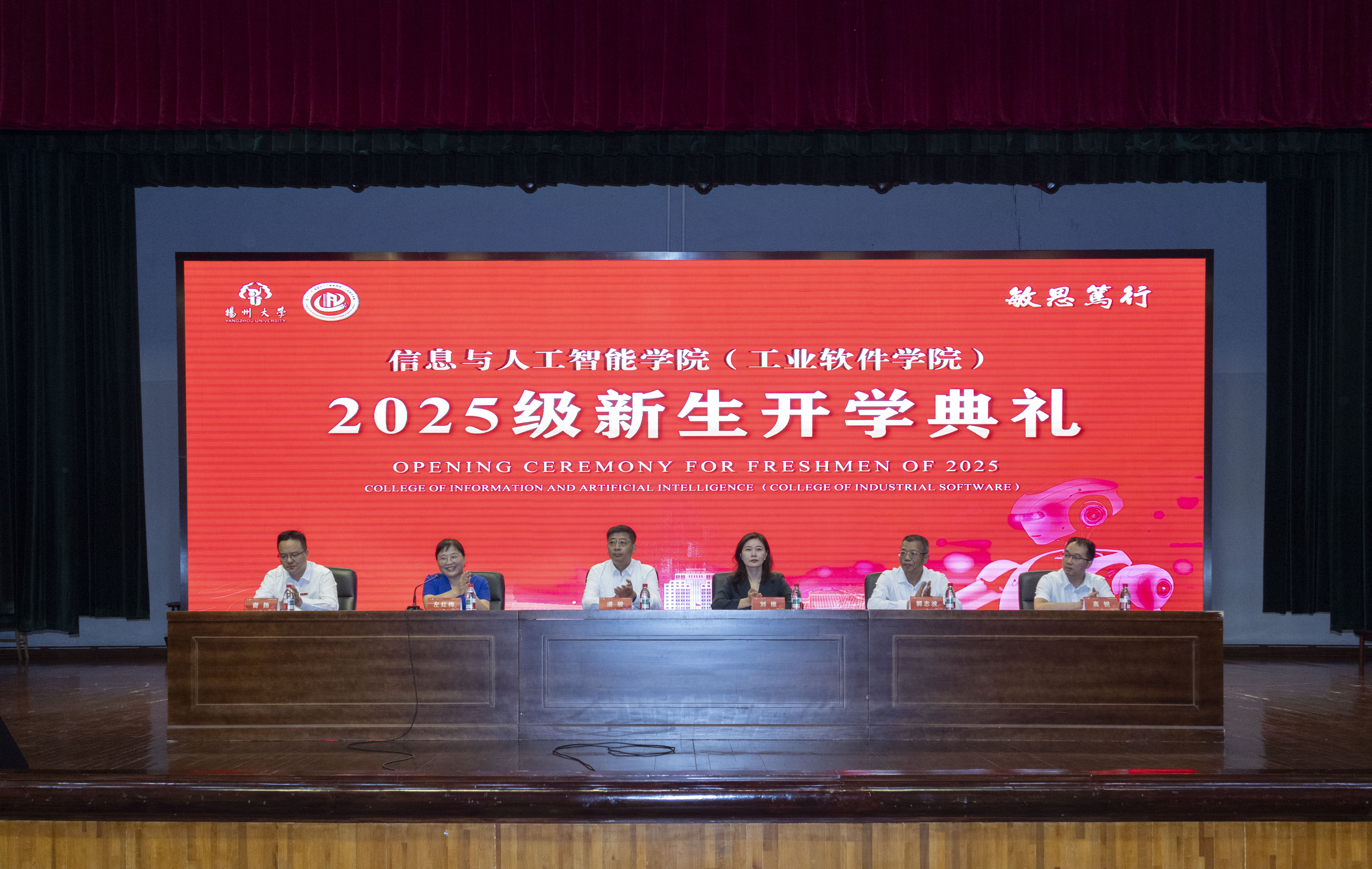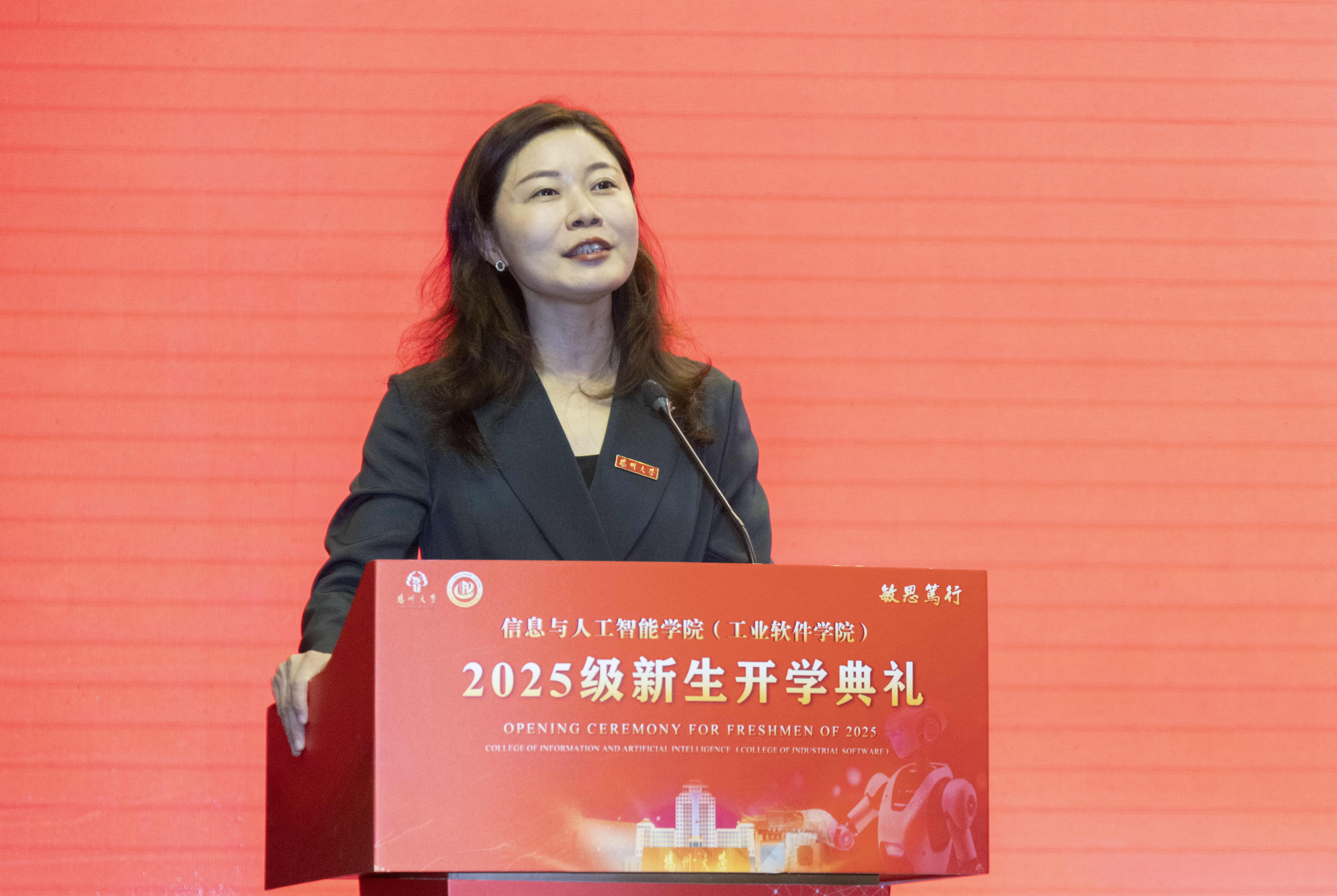 9月14日上午,学院在文体馆三楼小剧场隆重举行2025级新生开学典礼。院党委书记潘骏,院长刘维,院党委副书记左红梅,副院长郭志波,副院长裔扬,副院长高锐,院综合办公室主任谢兴兵,计算机科学与技术专业部主任朱毅,软件工程专业部副主任陈玮彤,电子与通信工程专业部副主任陈磊,自动化专业部副主任章恩泽,院团委书记(学工办主任)张海兵,院团委副书记(学工办副主任)蔡文文等出席会议。院党委副书记左红梅主持大会。