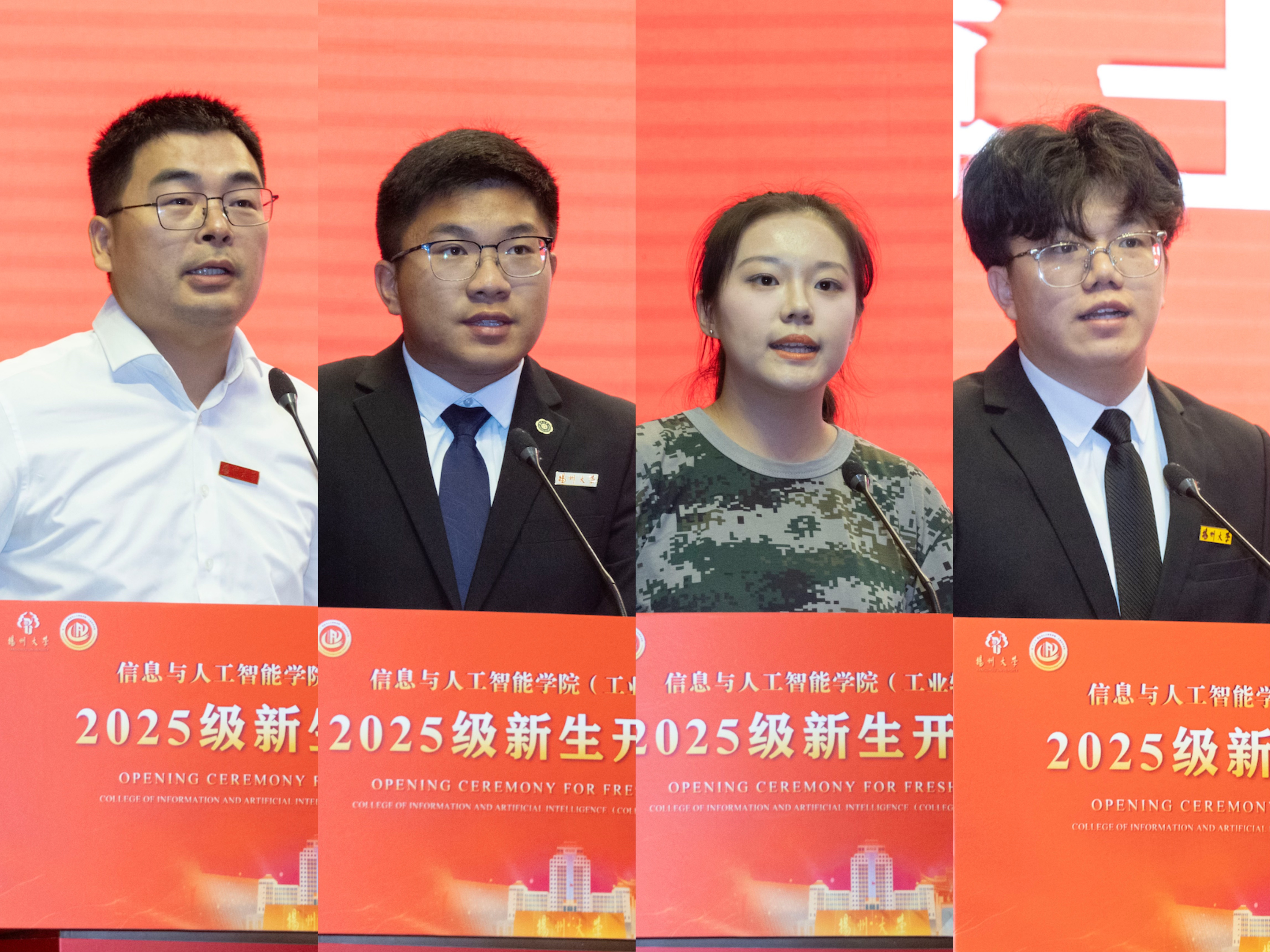 校学生会执行主席宋吕祥作为老生代表发言,他分享了在竞赛经历和学生工作中的经验与感悟,鼓励学弟学妹珍惜与时代同频的机遇、学校学院搭建的逐梦平台,把握能闯能试的机会和身边温暖的情感联结,绘就自己大学的精彩画卷。计科2502班郝睿婕作为本科生新生代表发言,她回忆了高考结束后对大学的期待,从“求知”“成长”“责任”三个角度分享了自己的看法,呼吁所有新生以青春之名赴时代之约。2025级博士生代表高兴安介绍了自己的科研经历,他将科研凝聚为三个关键词:兴趣、坚持与合作,鼓励硕博新生要以扎实的学识和能力,胸怀服务国家、贡献社会的使命。