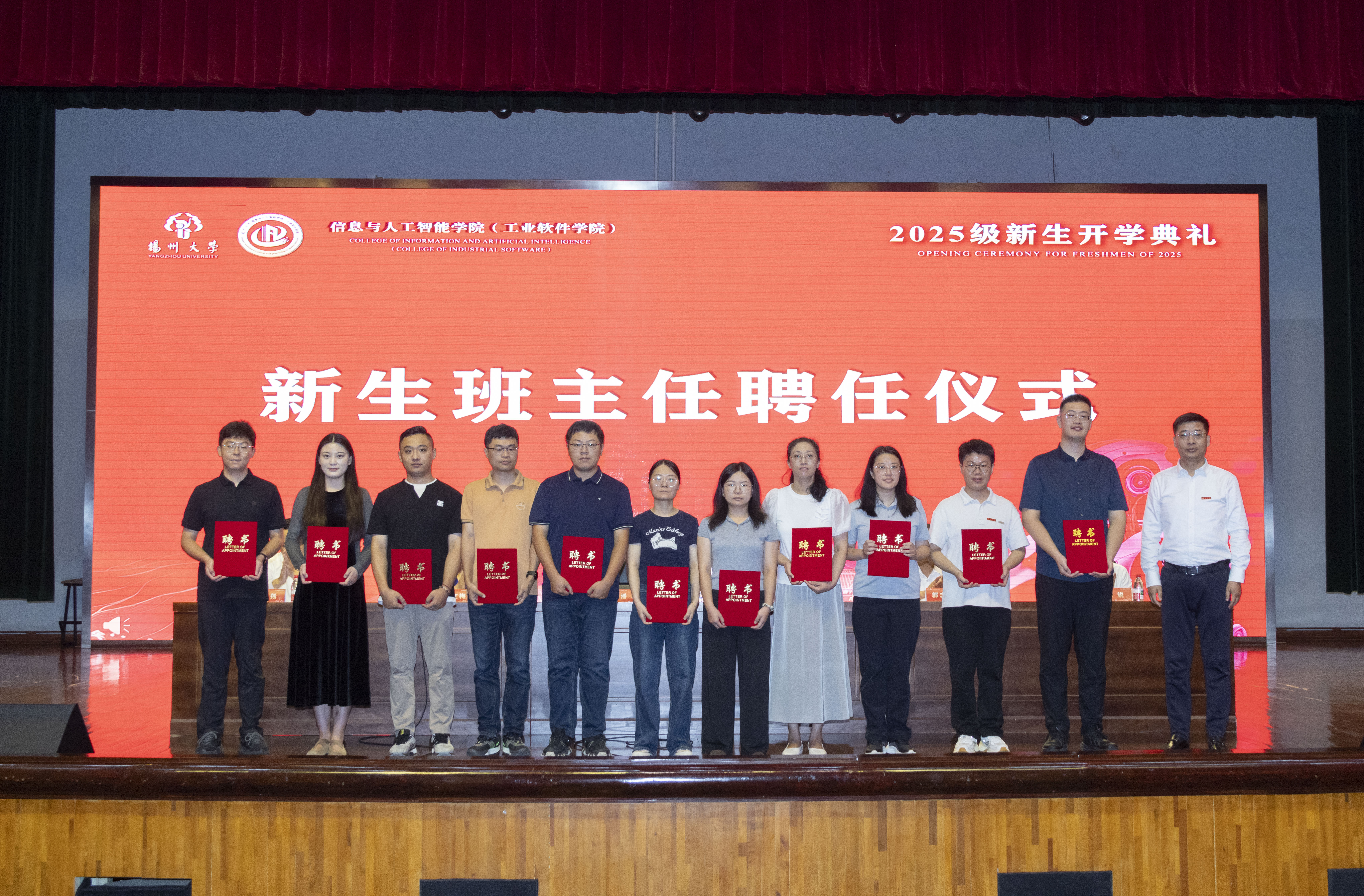 院党委书记潘骏为新生班主任颁发聘书,院长刘维为新生班主任助理颁发聘书。计算机科学与技术专业部强继朋教授作为教师代表发言,他以自己的本硕博的学习经历为引,提出“在迷茫与不确定中,成就更好的自己”,并分享了三点建议:一是在不确定中把握确定性,二是在迷茫时学会主动出击,三是在技术洪流中守住你的独特性。