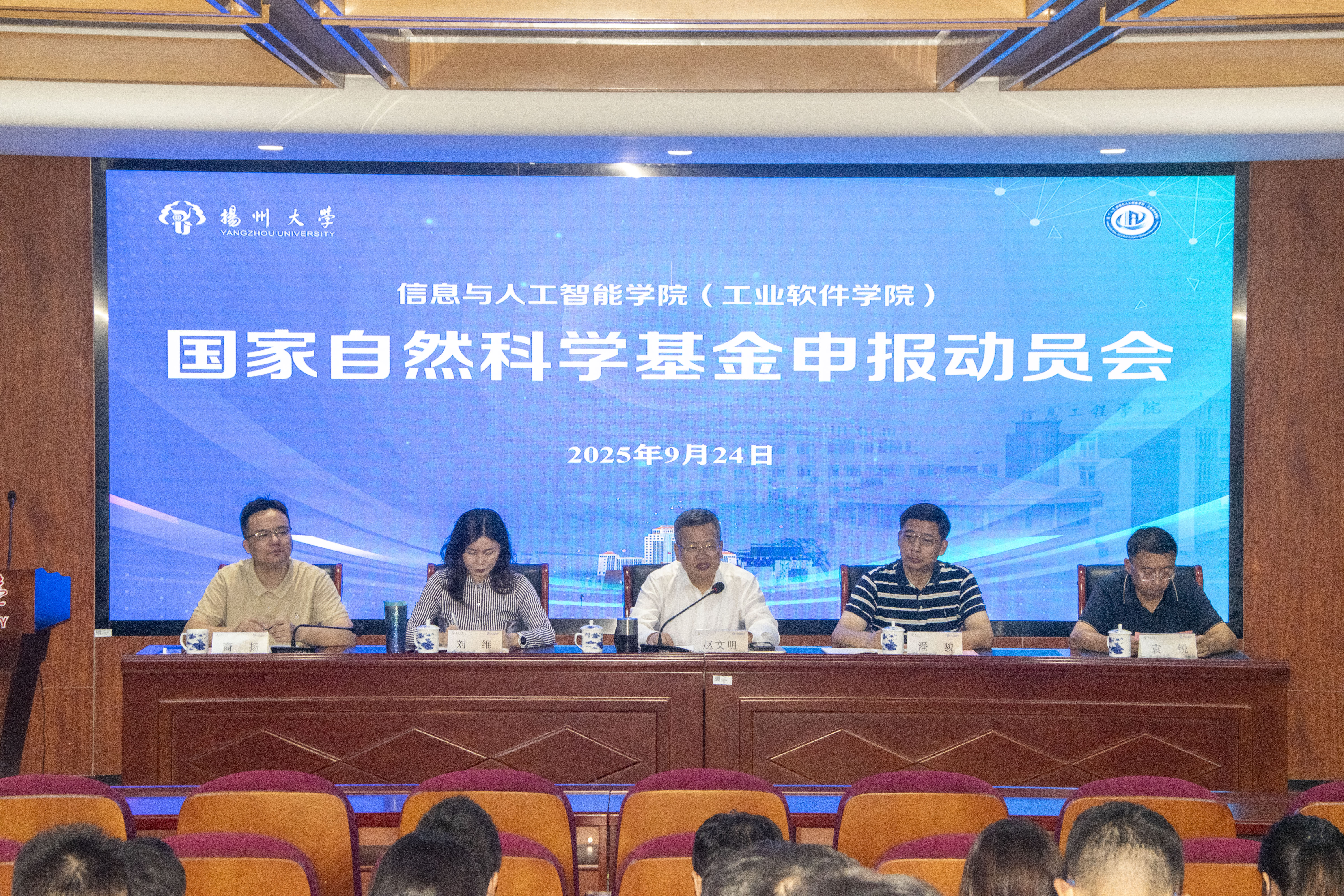 9月24日下午,学院在三楼报告厅召开2026年度国家自然科学基金申报动员会,全面动员和部署新一轮基金申报工作。副校长赵文明出席会议并作动员讲话。学院党委书记潘骏、院长刘维、校科技处六级职员袁锐、副院长裔扬以及学院2026年度国家自然科学基金申请人、45周岁以下青年教师参加了会议。会议由副院长裔扬主持。