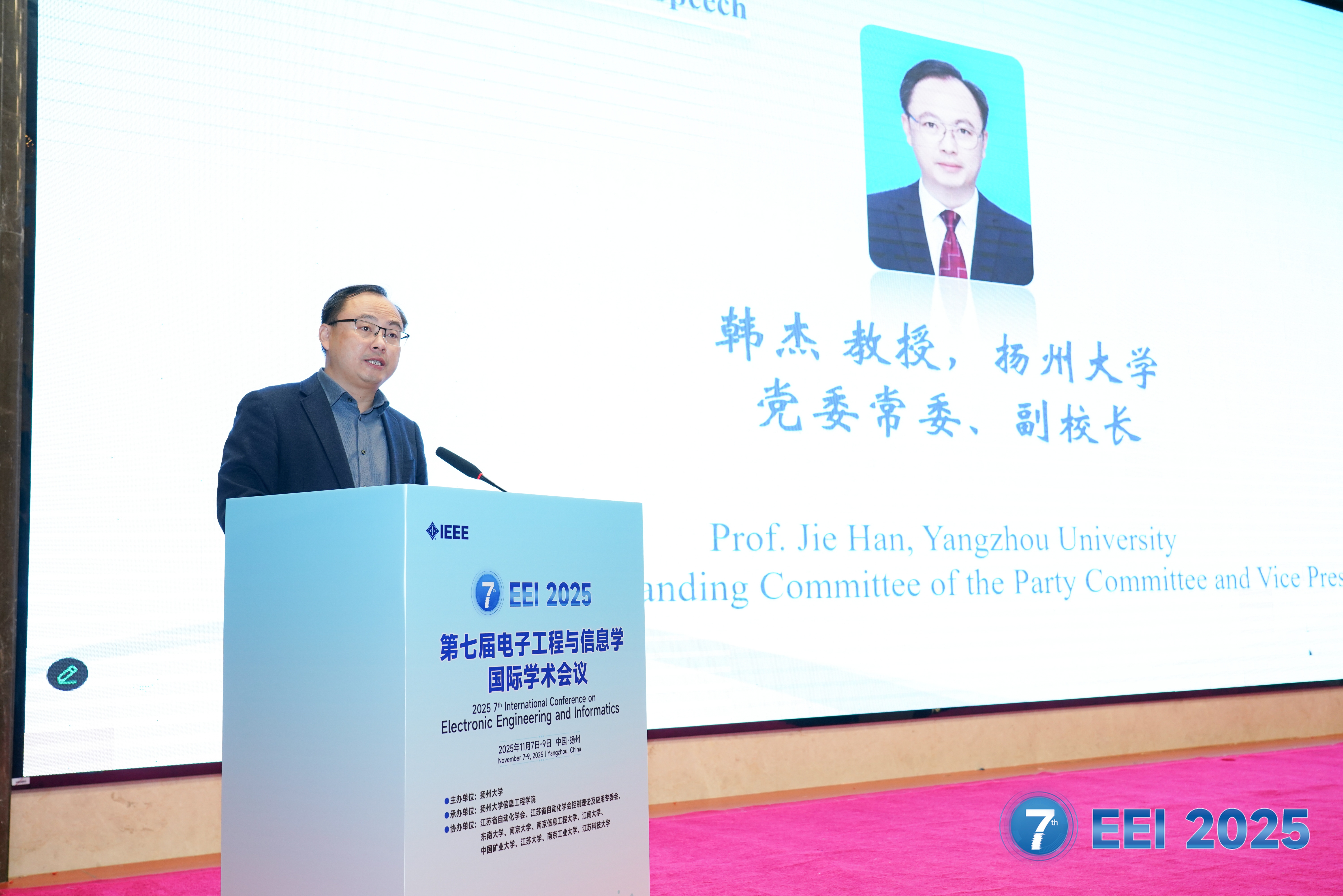 11月8日,第七届电子工程与信息学国际学术会议(EEI 2025)在明月湖酒店顺利召开。扬州大学党委常委、副校长韩杰,国家自然科学基金委信息学部原二处、三处处长宋苏出席开幕式并致辞。本次大会由扬州大学信息学院党委书记潘骏主持。
